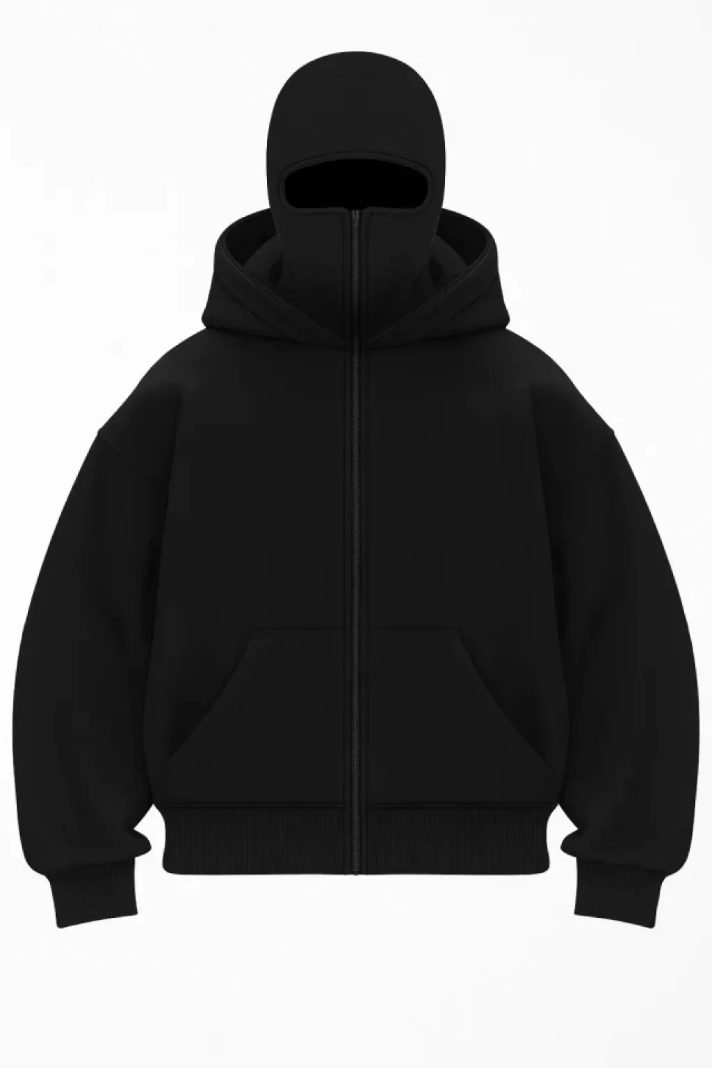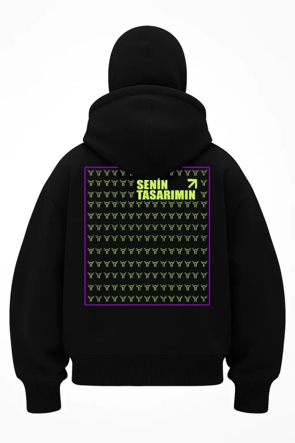 Arka Samuray Kapüşonlu ZIP Fermuarlı Kapüşonlu Sizin Tasarımınız SweatShirt - Siyah
