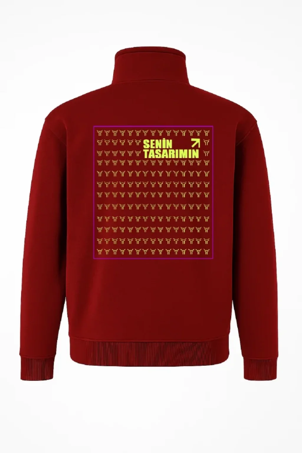 Arka Yarım Fermuarlı Oversize Yakalı Basic SweatShirt - Kırmızı
