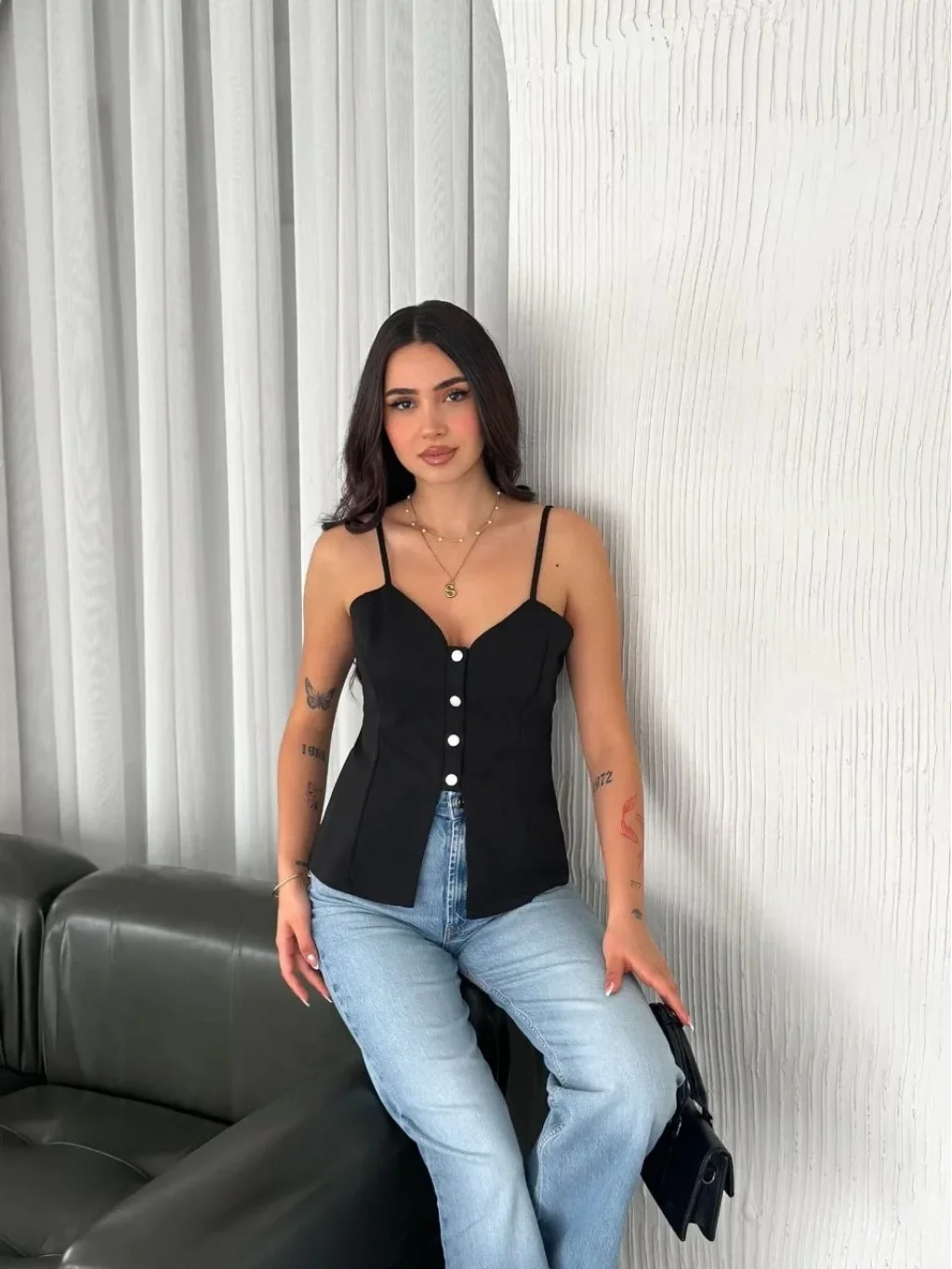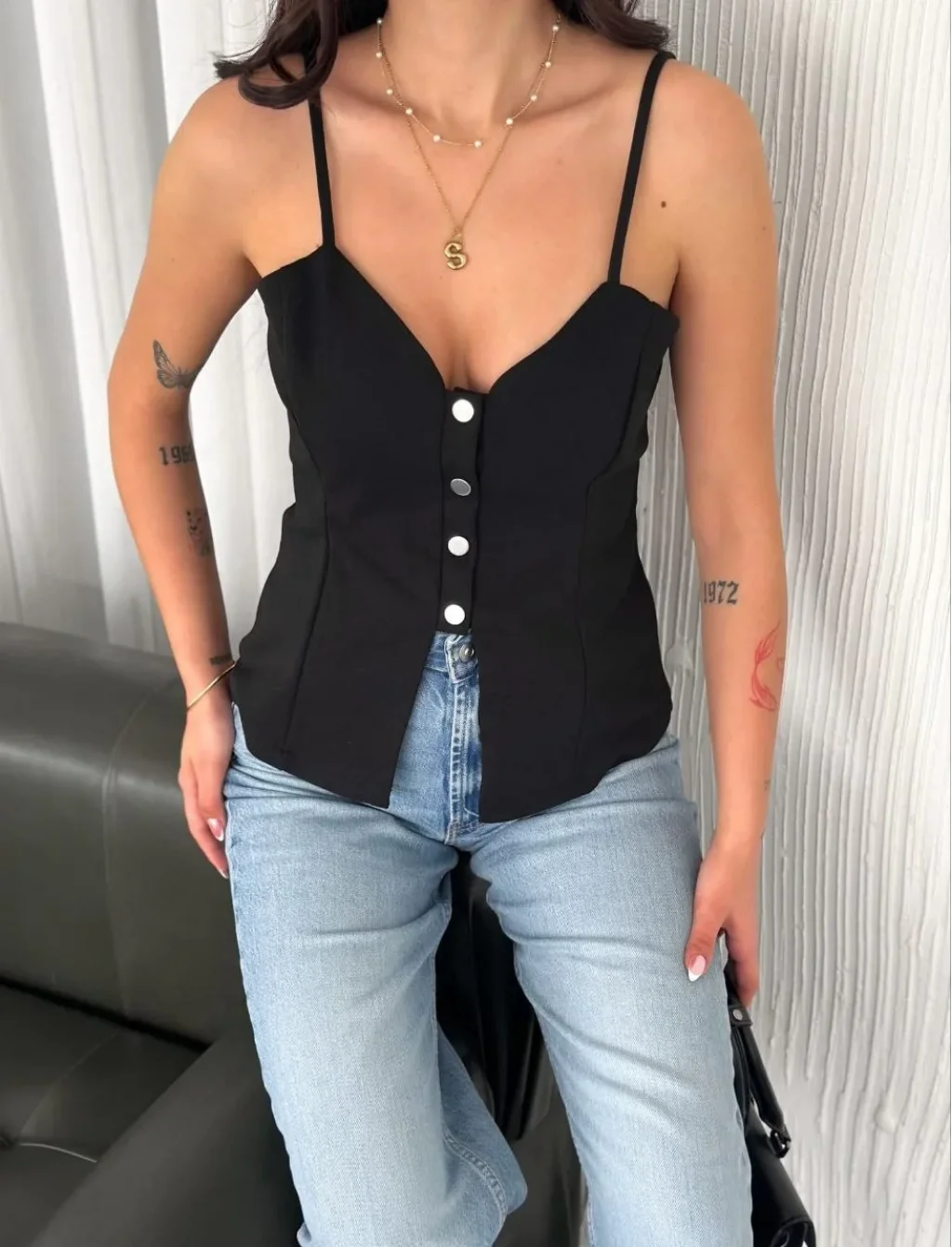 DetayAskılı kolsuz , Cıt dügme detaylı