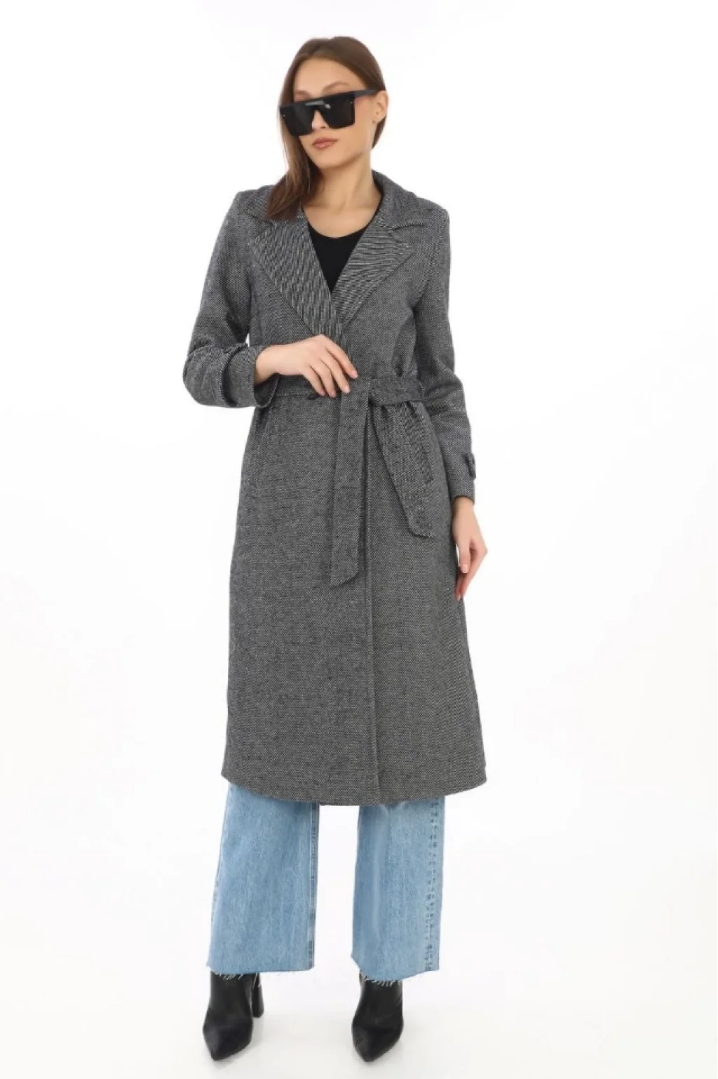Astarlı Balık Sırtı Kaşmir Kaşe Kaban - Füme