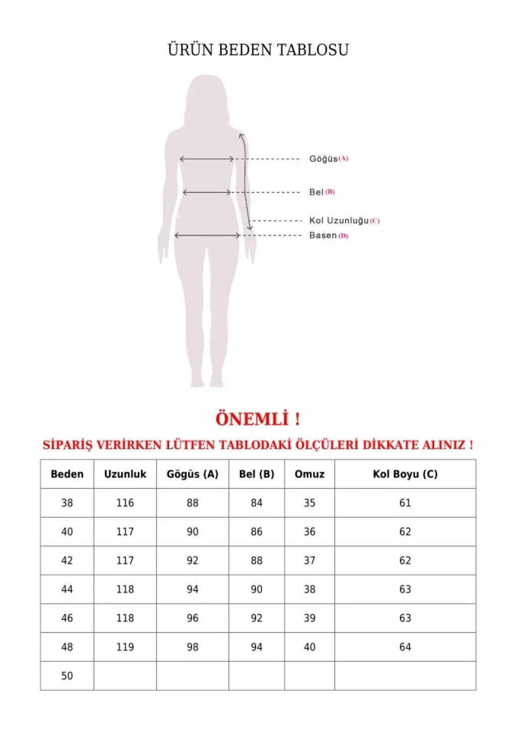 Modelin Ölçüleri: Boy:165, Kg:55, Göğüs:90, Bel:72, Kalça: 100