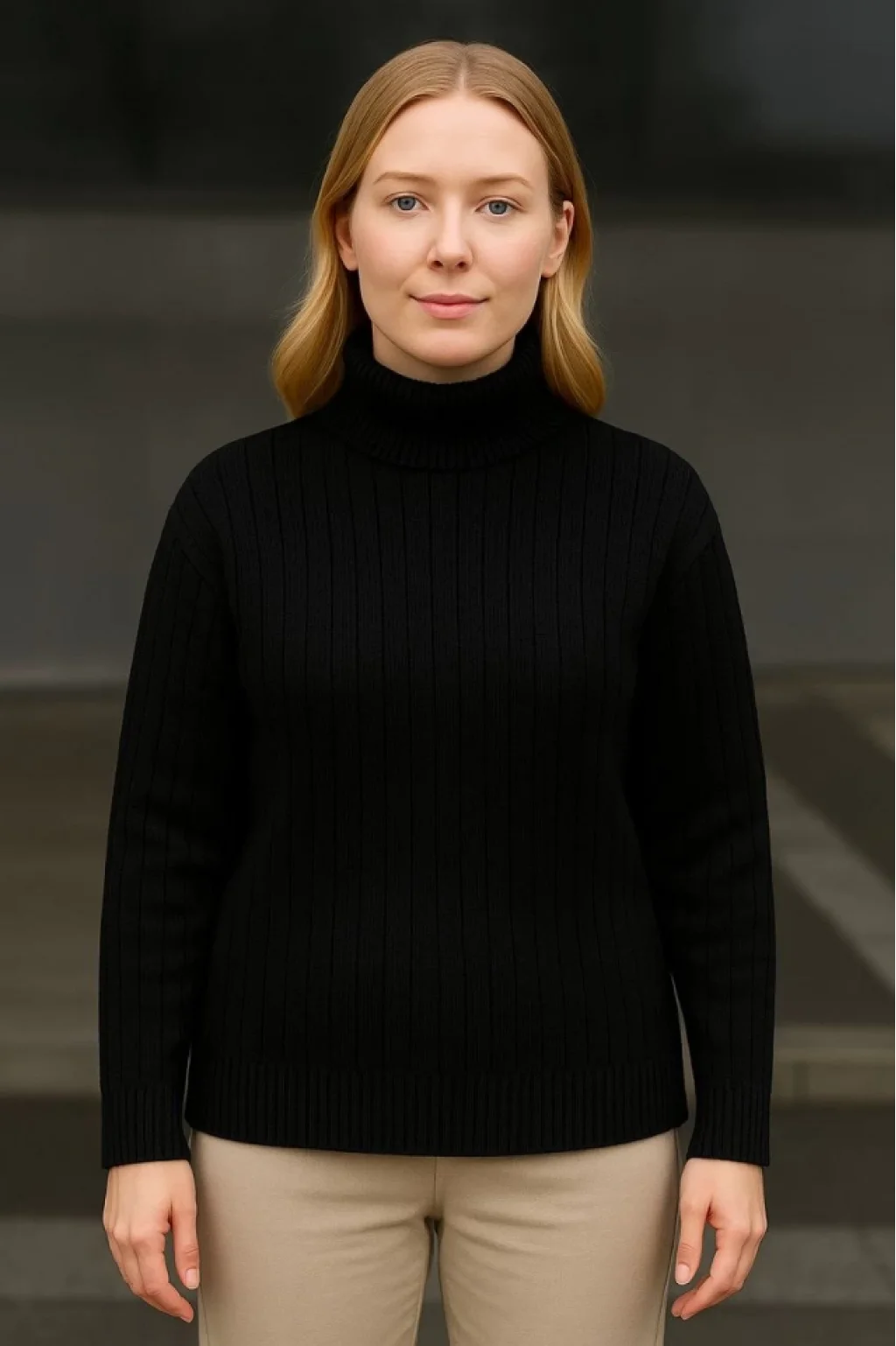 Balıkcı Yaka Bağazlı Triko Kazak Pamuklu Kalın Fitilli Dokuma - Siyah