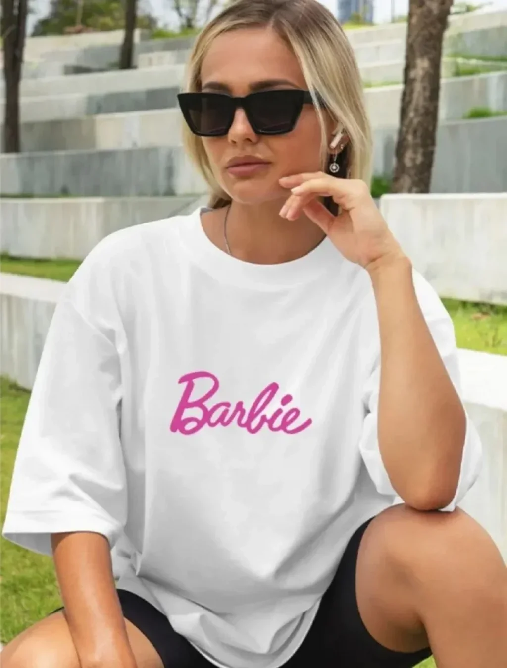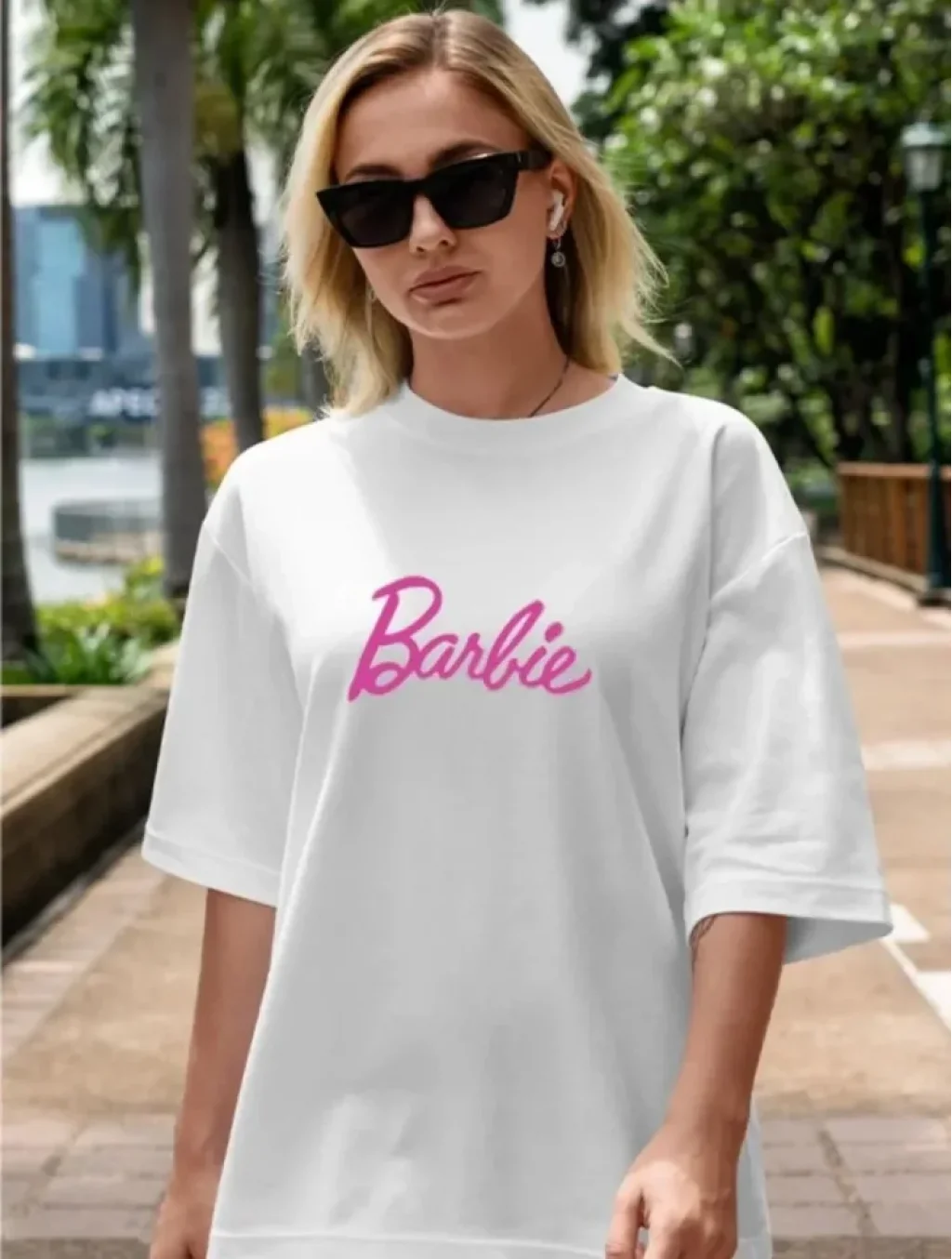 Baskılı Oversize T-shirt - Beyaz