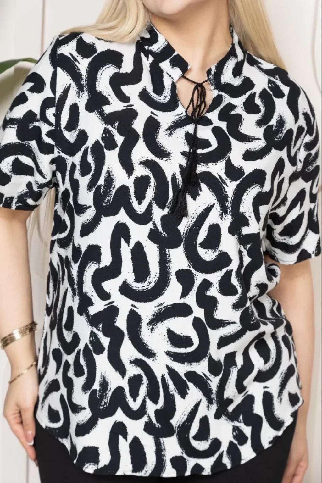 Bebe yaka püskül Detaylı Bluz- Desenli