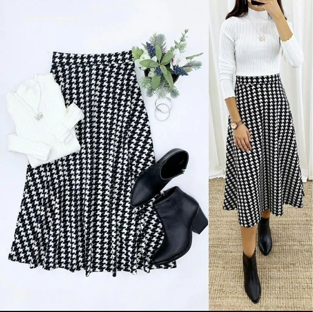 Beli Lastikli Kazayağı Desen Süet Scuba Etek.