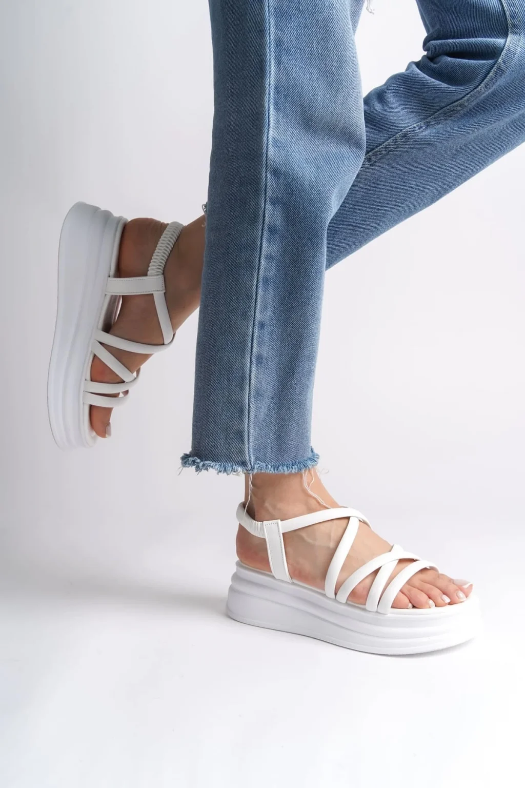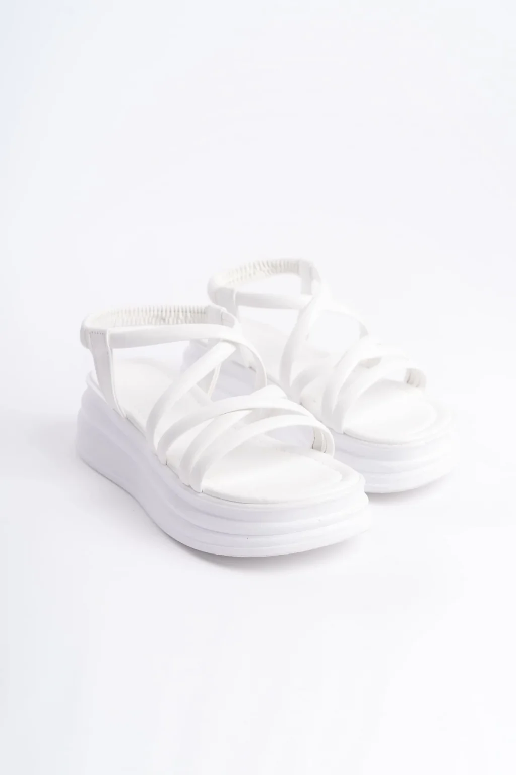 BELLA Lastikli Şerit Detaylı Ortopedik Taban Kadın Sandalet CBT - Beyaz