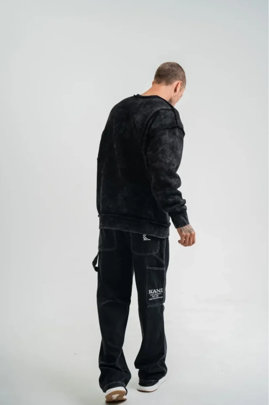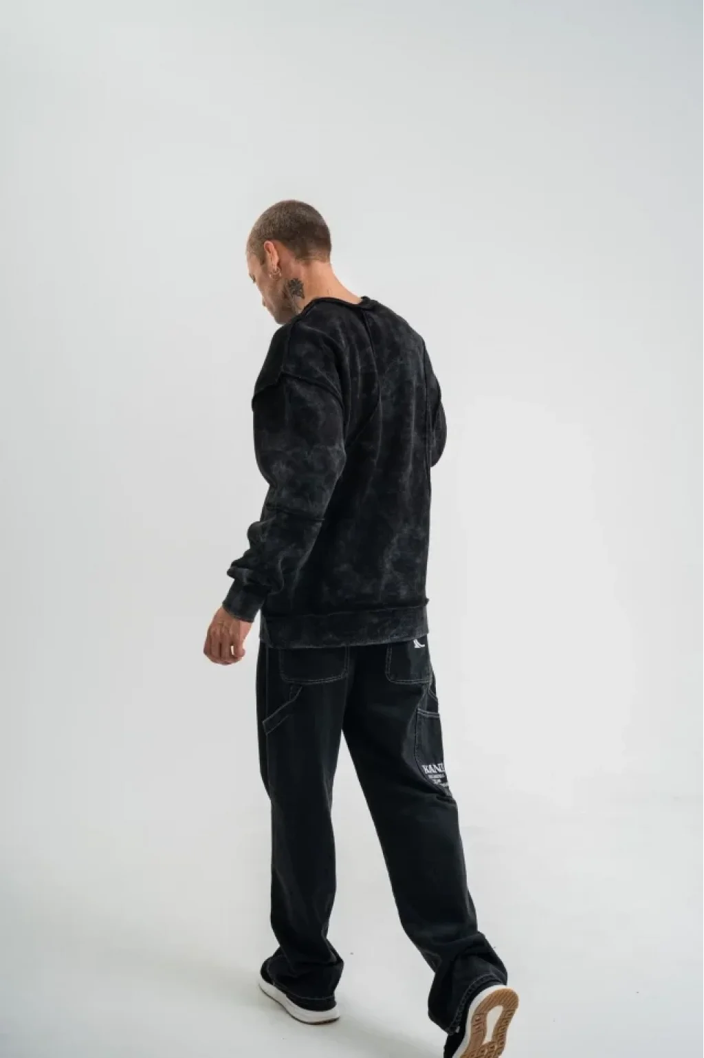 Bisiklet Yaka Yıkamalı Asimetrik Kesim SweatShirt - Siyah