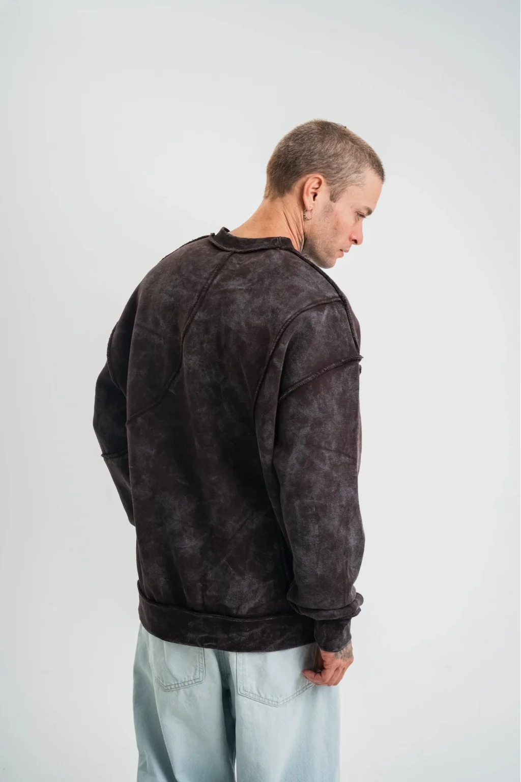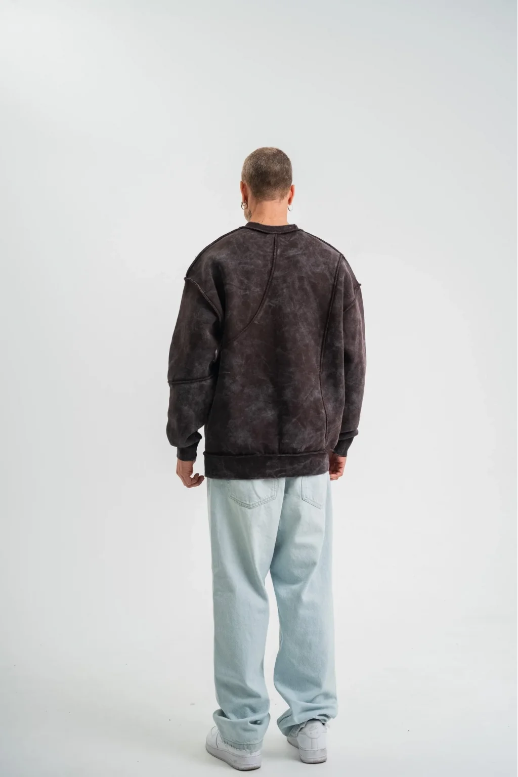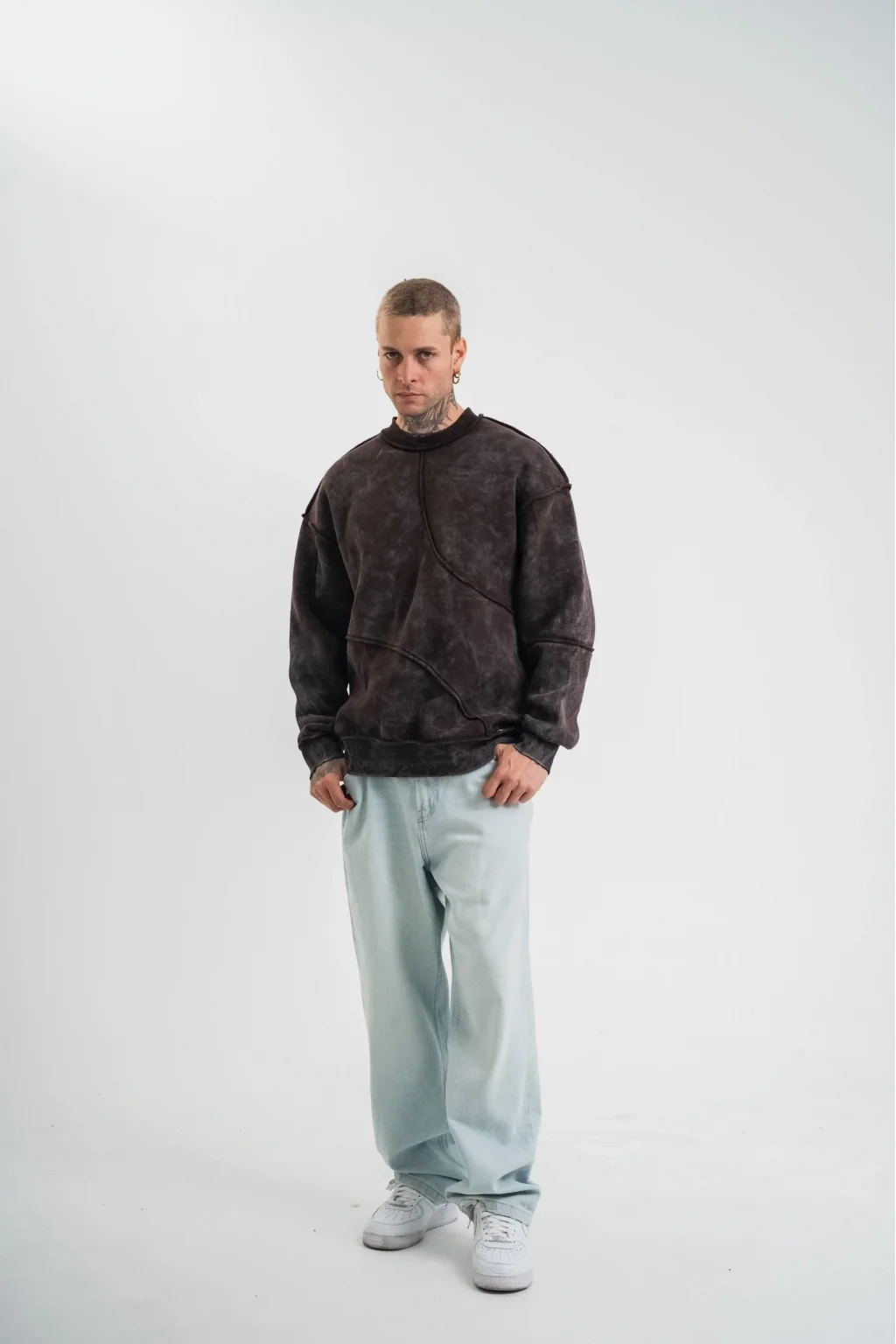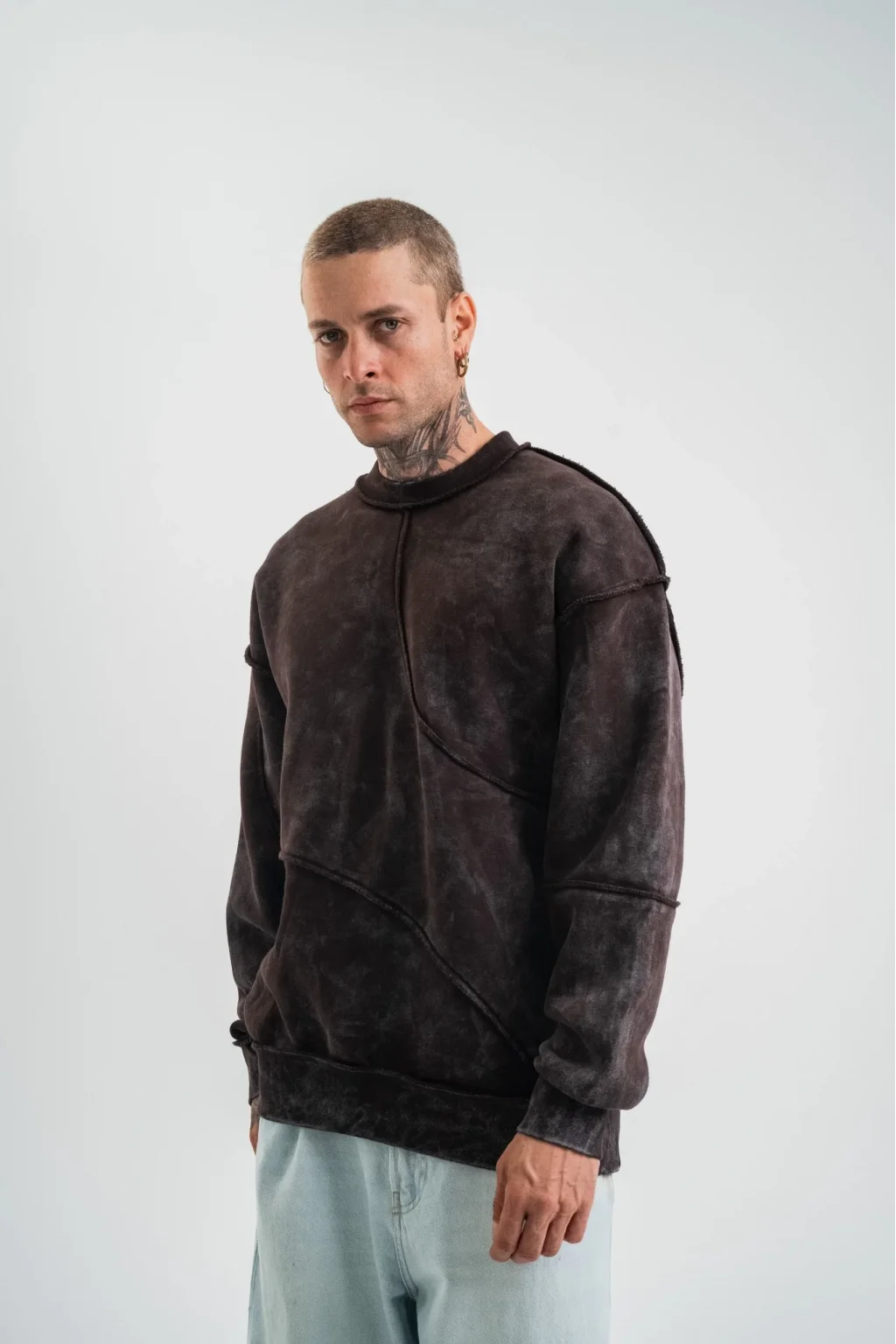 Bisiklet Yaka Yıkamalı Asimetrik Kesşm SweatShirt - Kahve