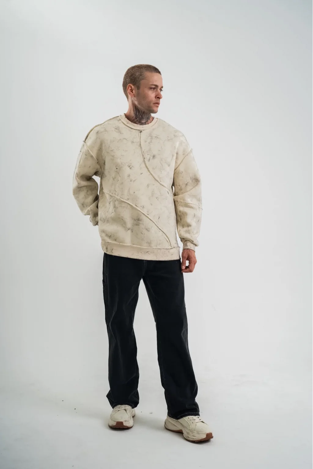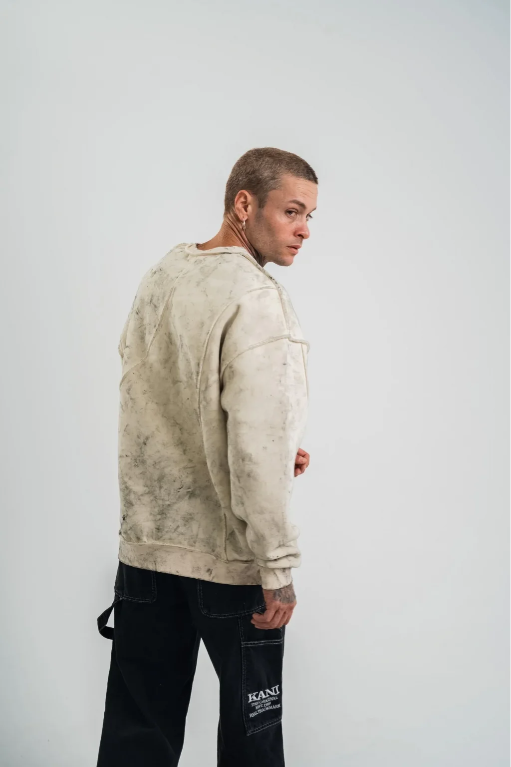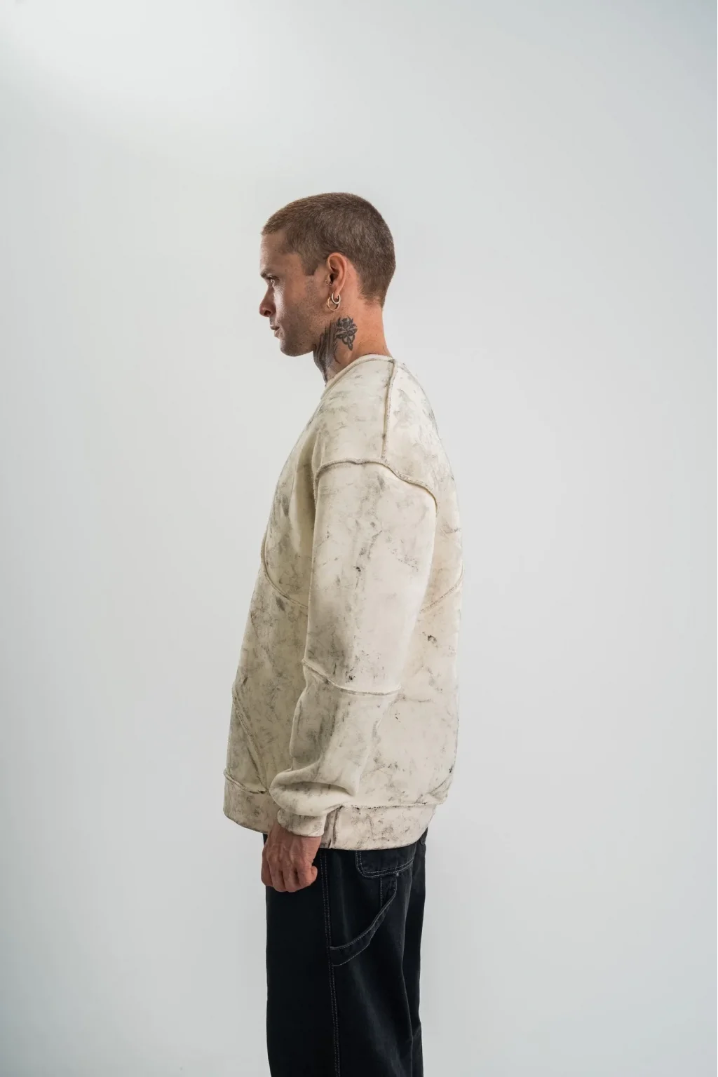Bisiklet Yaka Yıkamalı Asimetrik Kesşm SweatShirt - Krem