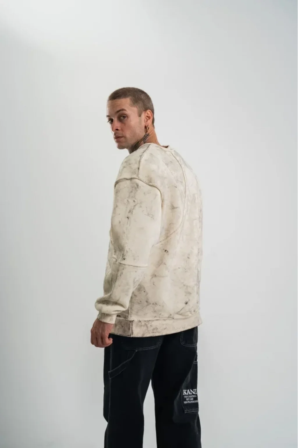 Bisiklet Yaka Yıkamalı Asimetrik Kesşm SweatShirt - Krem