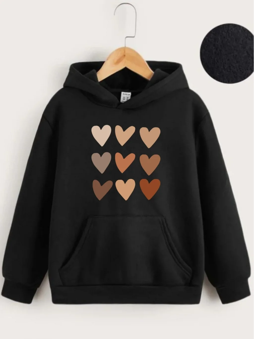 • Çocuk Unisex Kapüşonlu Mini Kalpli Baskılı Sweatshirt - Siyah