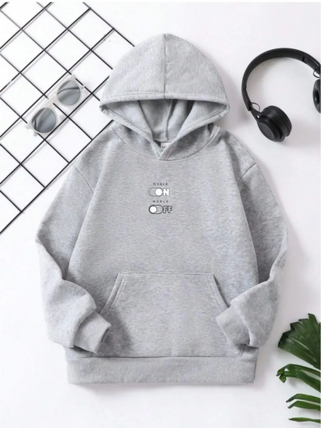 • Çocuk Unisex Kapüşonlu Music ON-OFF Baskılı Sweatshirt - Gri