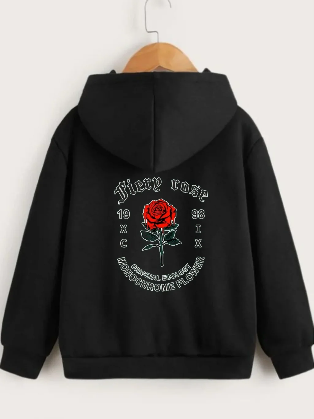 • Çocuk Unisex Kapüşonlu Ön ve Arka Fiery Rose Baskılı Sweatshirt - Siyah