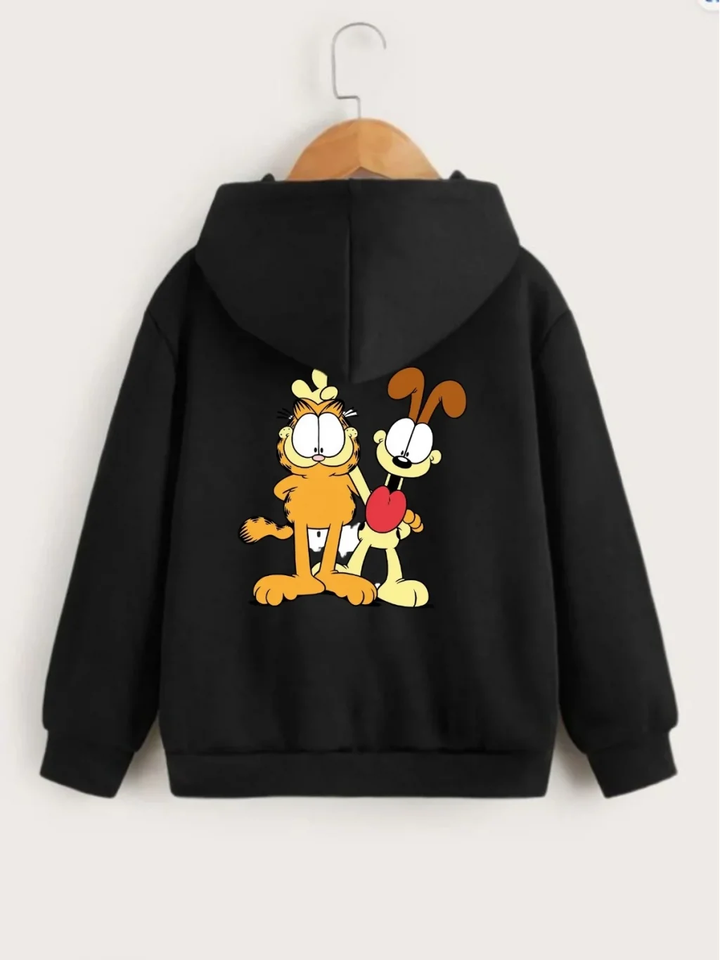 • Çocuk Unisex Kapüşonlu Ön ve Arka Garfield Baskılı Sweatshirt - Siyah