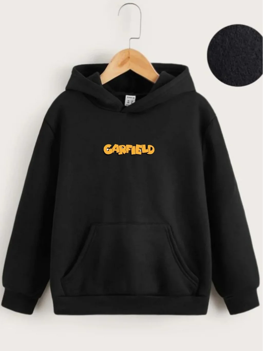 Çocuk Unisex Kapüşonlu Ön ve Arka Garfield Baskılı Sweatshirt - Siyah