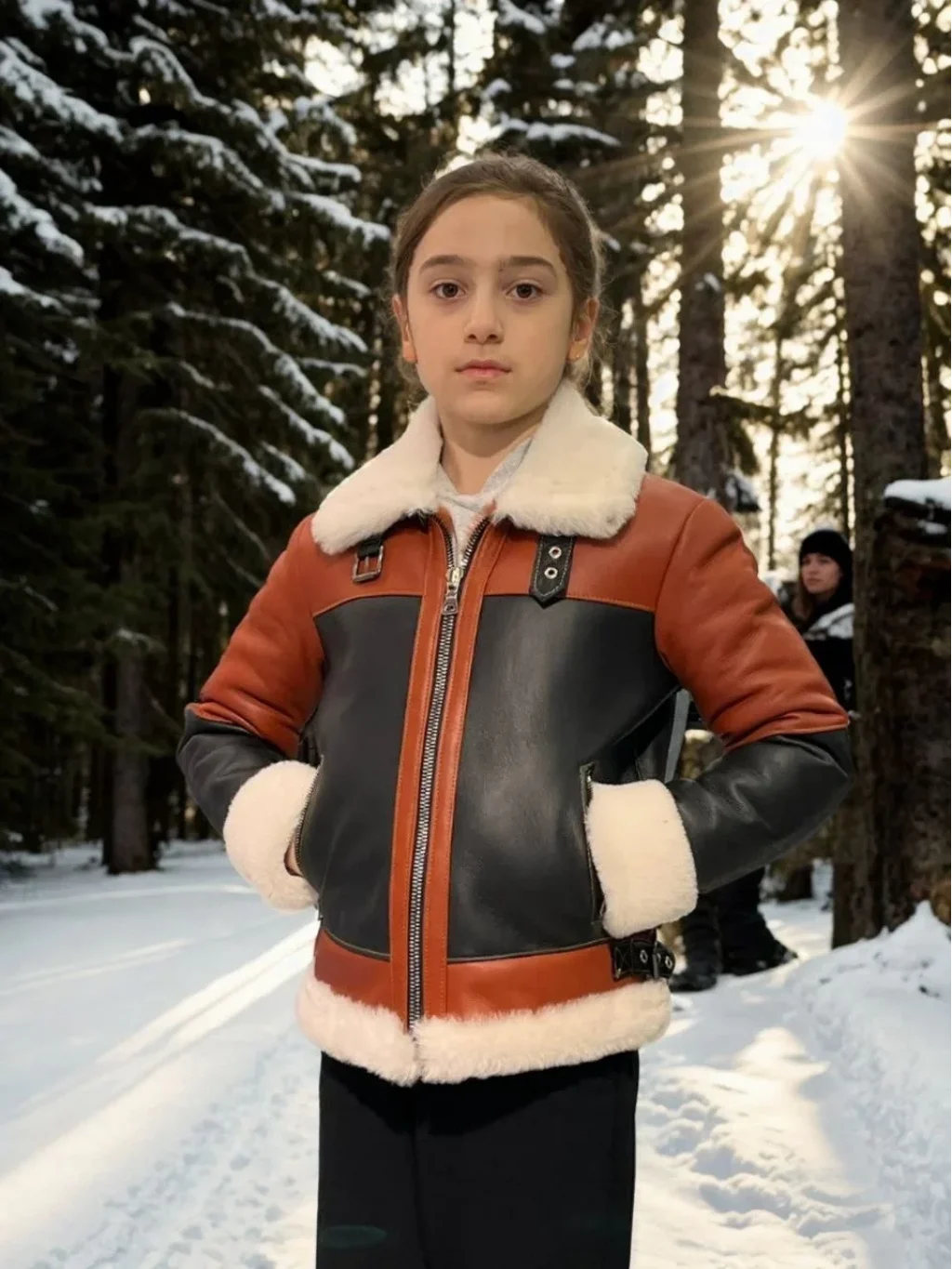Çocuk Yakalı Parçalı Kürk - Kiremit