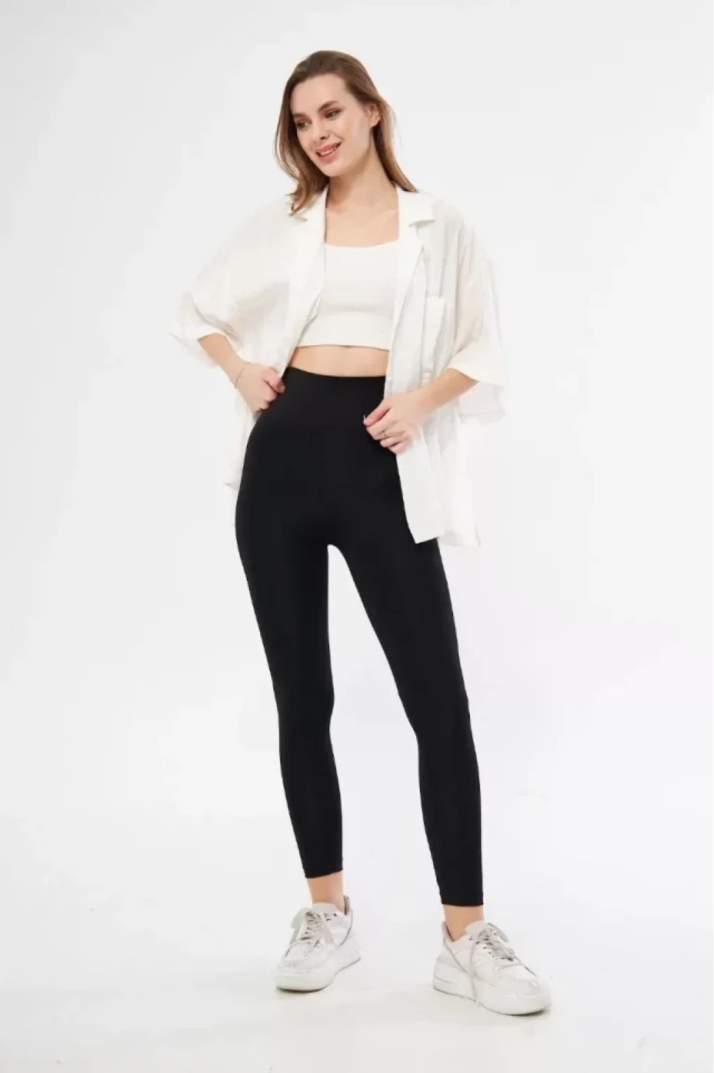 Dalgıç Yüksel Bel Battal Baskılı Tayt - Siyah