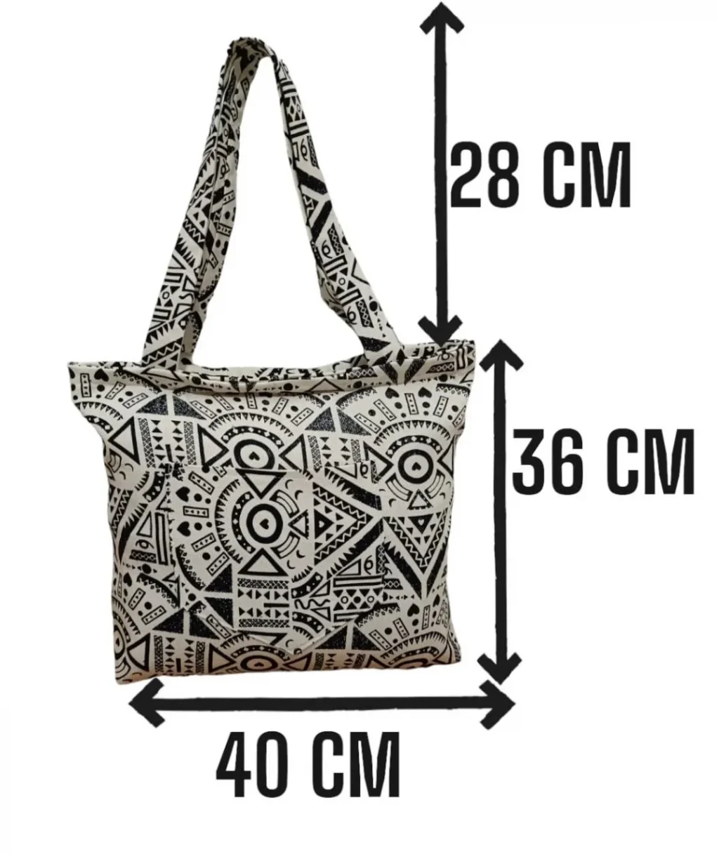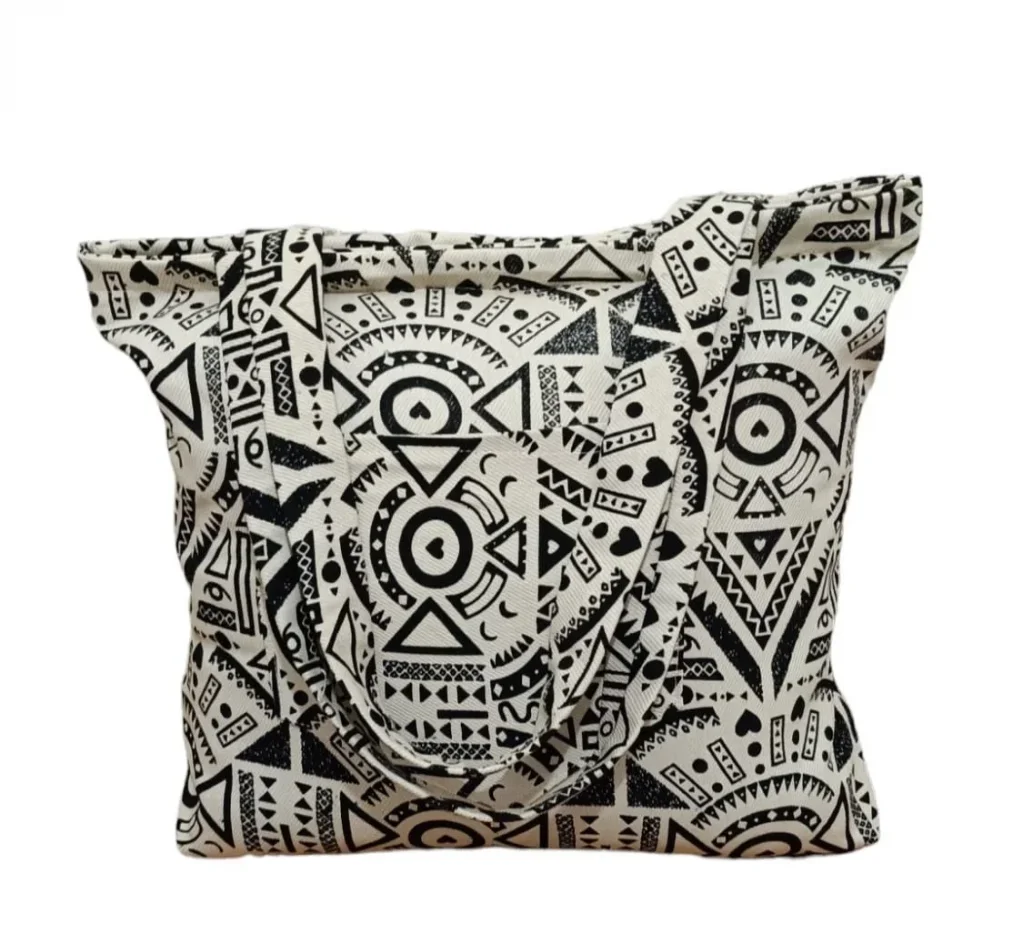 Desenli Piknik ve Deniz Cepli Fermuarlı Çanta - Beyaz