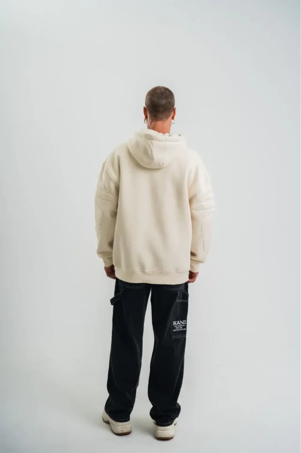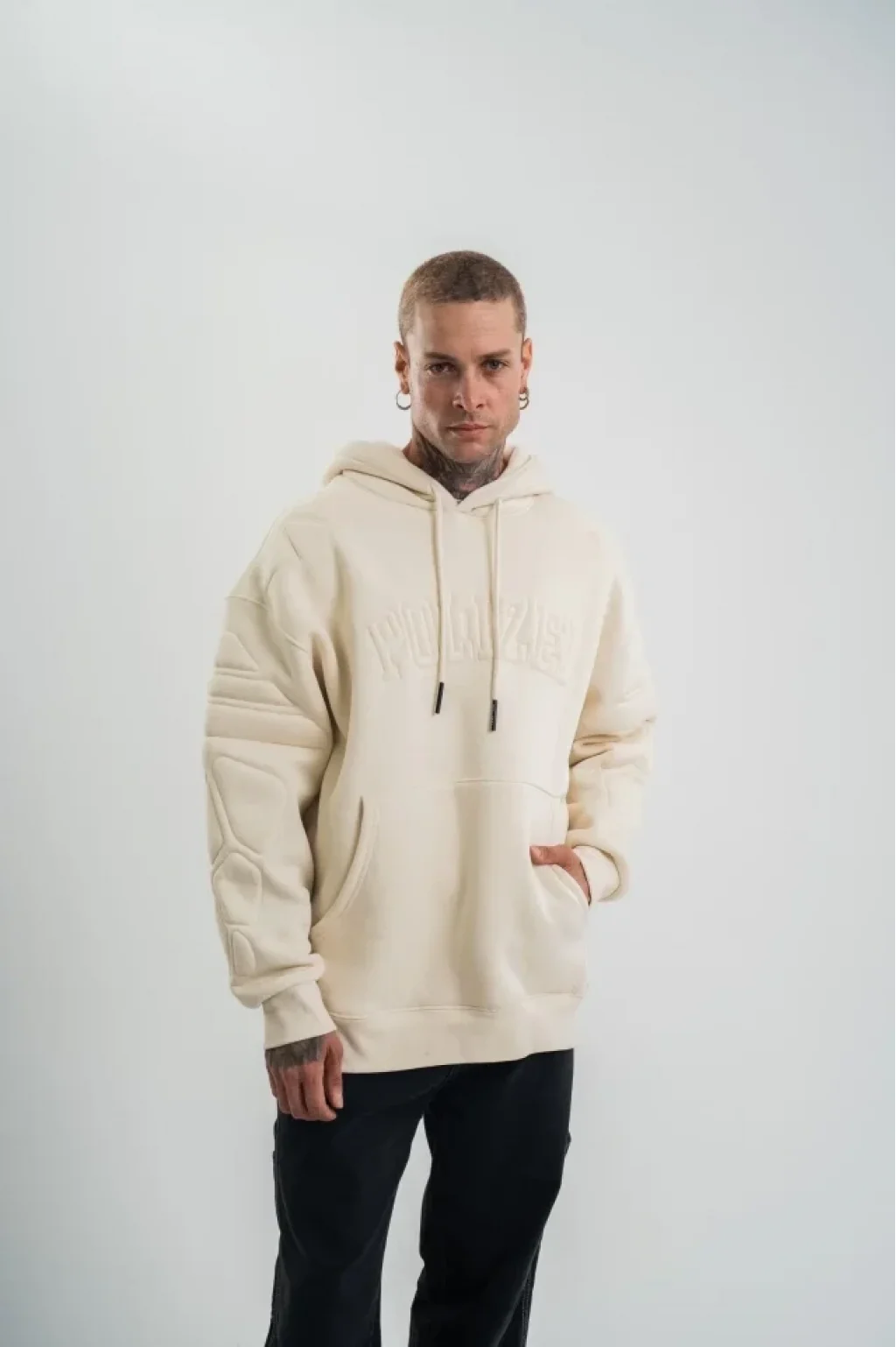 Double Oversize Kapşonlu Nakışlı SweatShirt - Krem