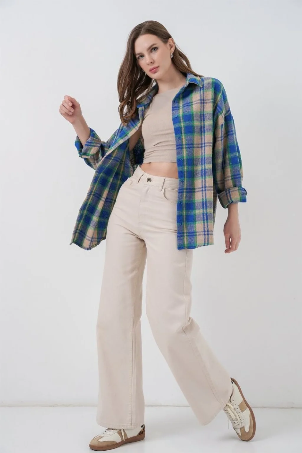 Ekose Desen Oversize Oduncu Gömlek 3854 Mavi Gri