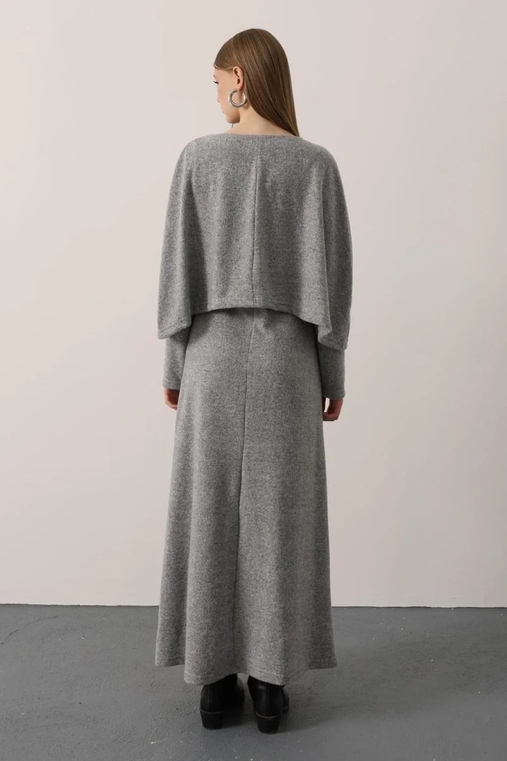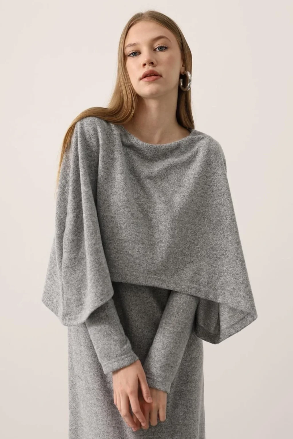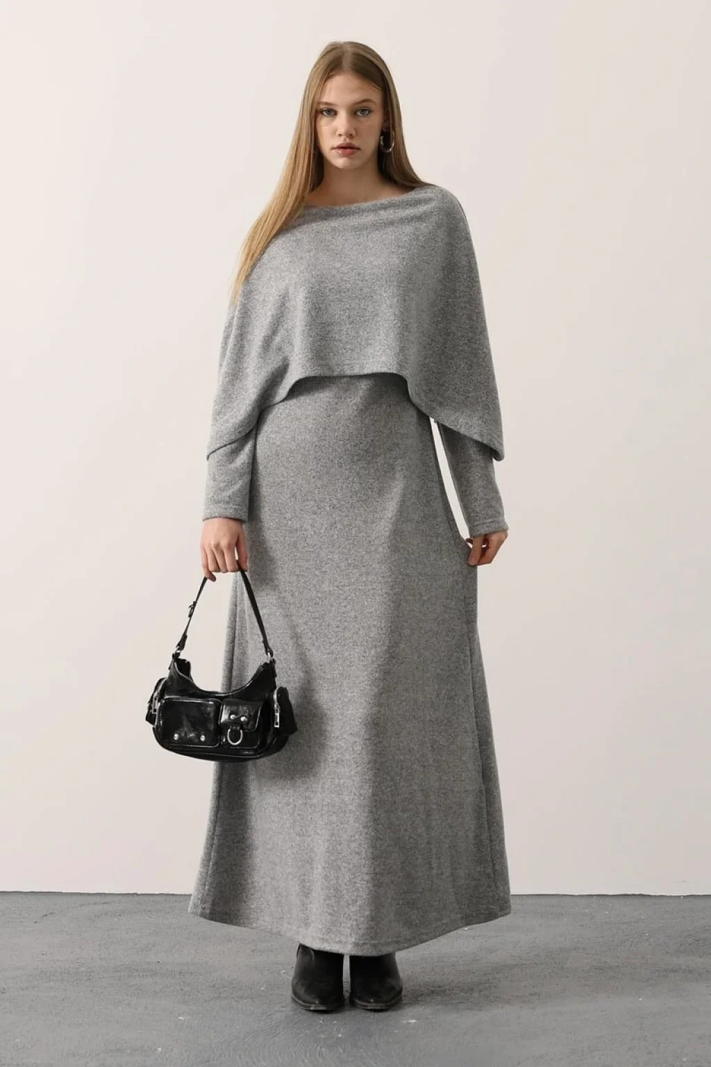 • Elora Yumoş Elbise, pelerinli tasarımı ve yumuşak dokusuyla zarif bir görünüm sunar. Konforlu, modern ve her stile uyumlu.