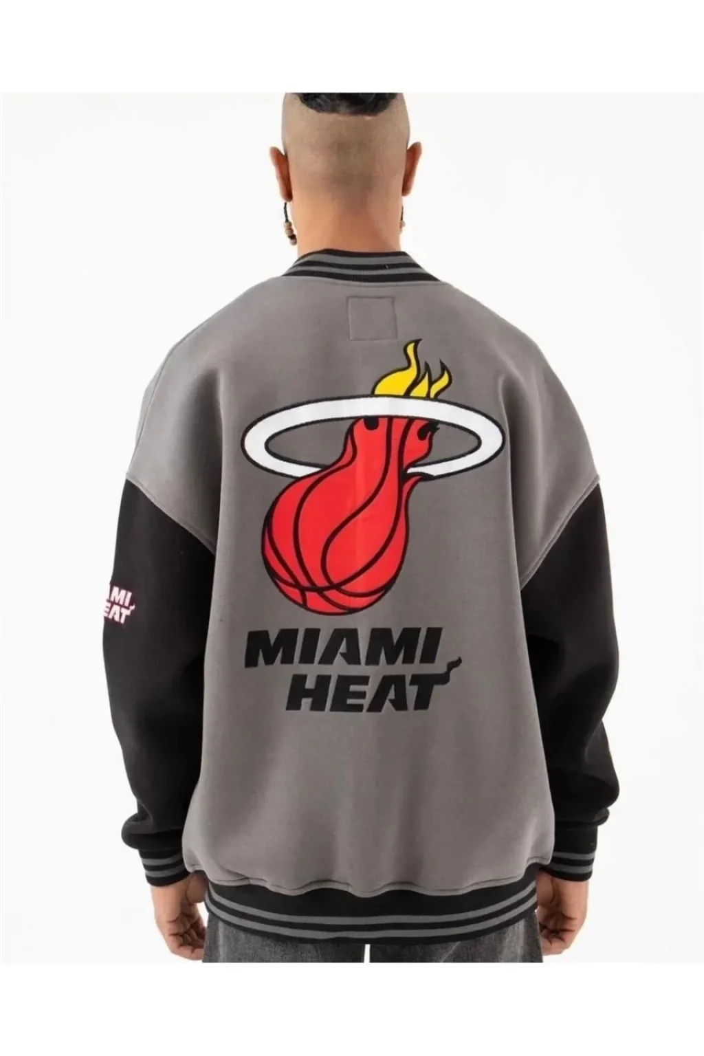 Erkek 28 Baskılı Oversize Üç İplik Kolej Ceket - Füme