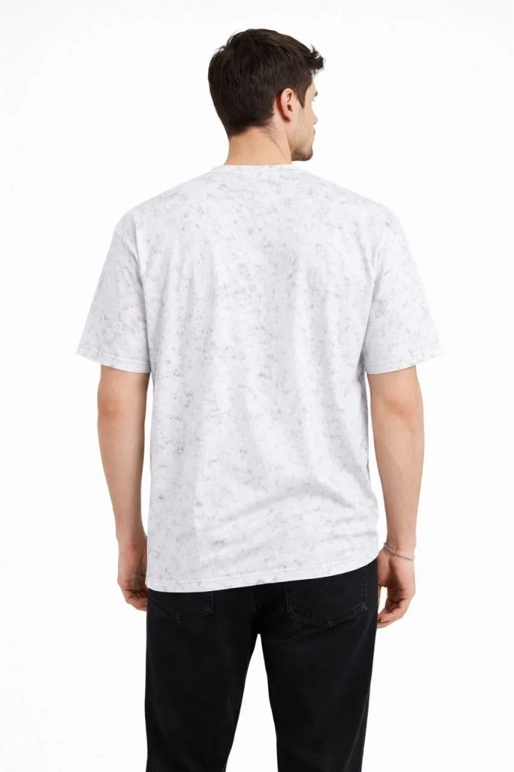 Erkek Asit Yıkama Bisiklet Yaka Kısa Kollu Oversize T-Shirt Tişört - Beyaz