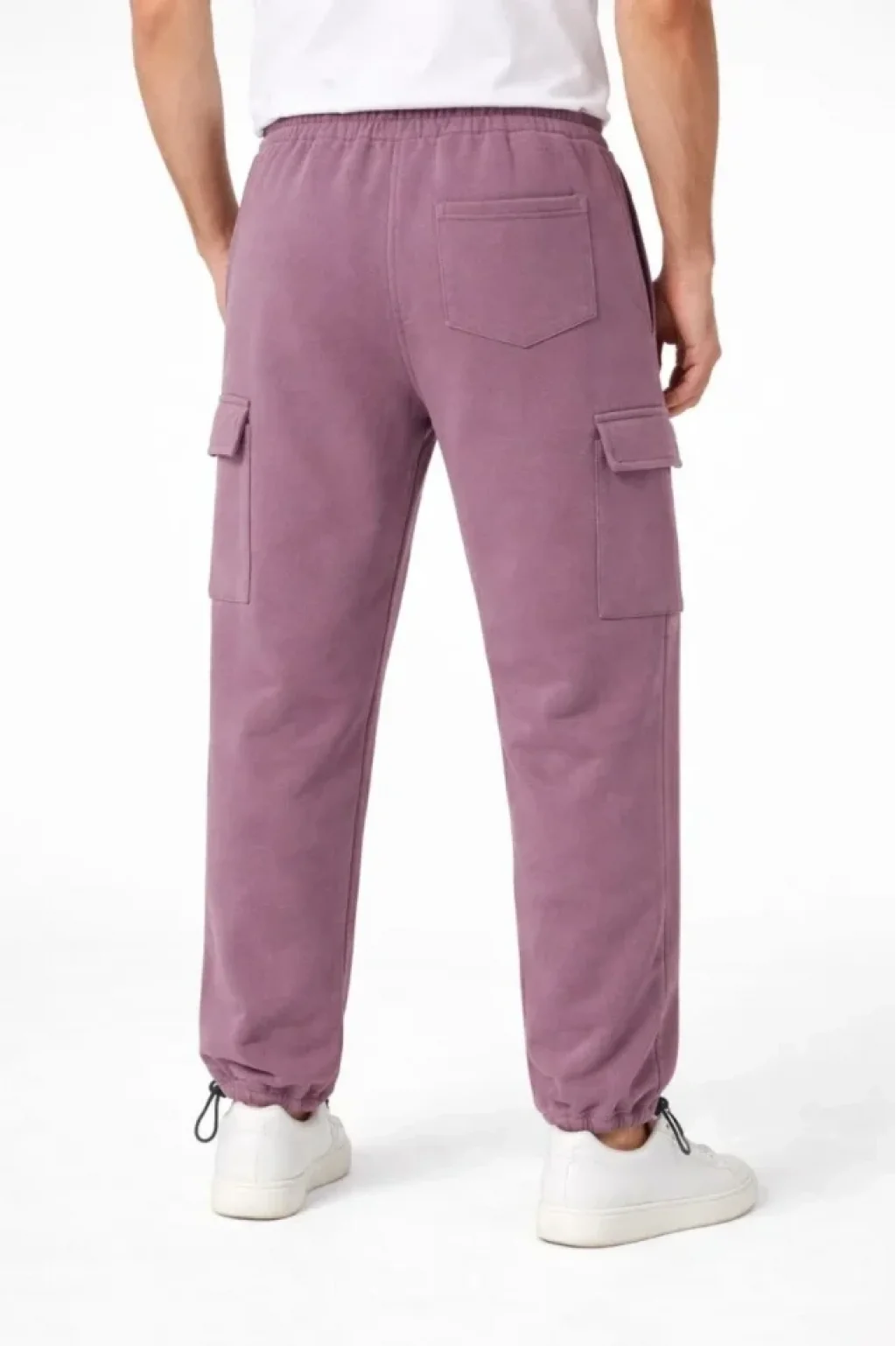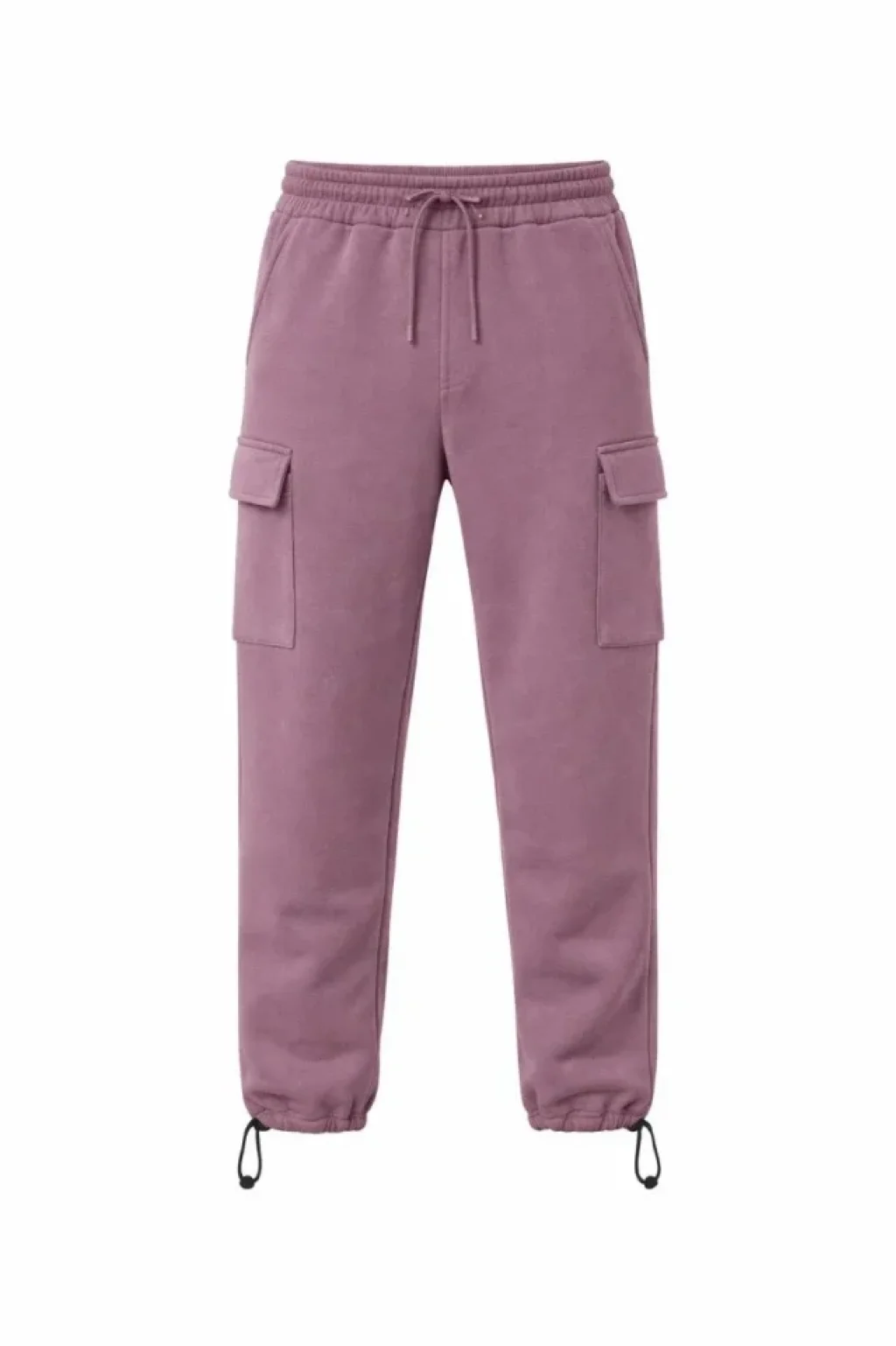 Erkek Baggy Üç İplik Kargo Cepli Eşofman Ayarlanabilir Paça Beli İpli Pantolon - Gül Kurusu