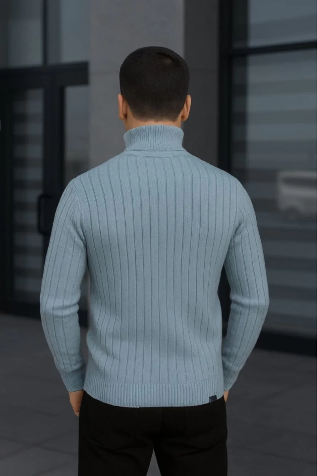 Erkek Balıkcı Yaka Bağazlı Triko Kazak Pamuklu Kalın Fitilli Dokuma, Regular Fit Uzun Kollu Kışlık Model - Bebe Mavisi