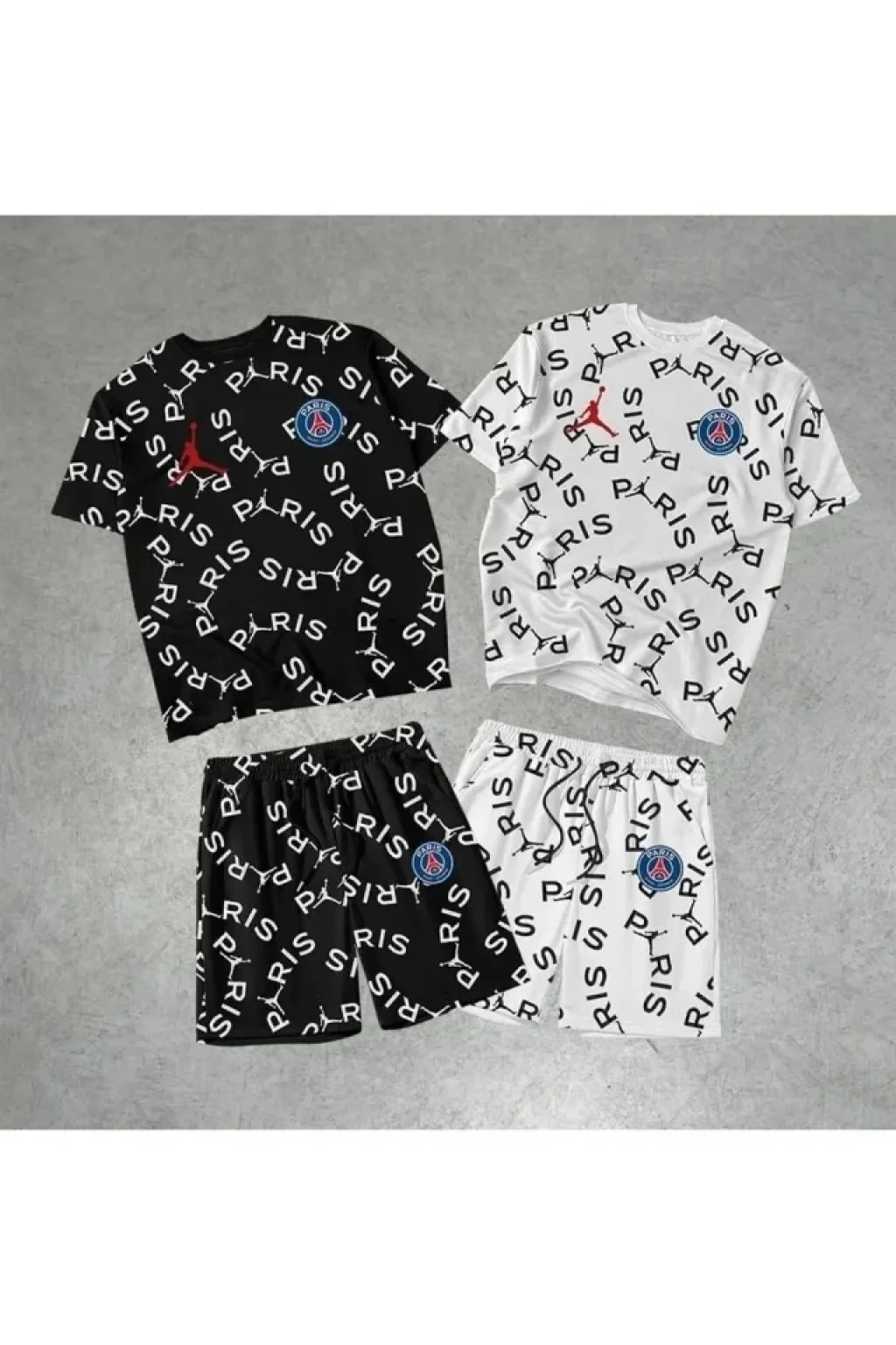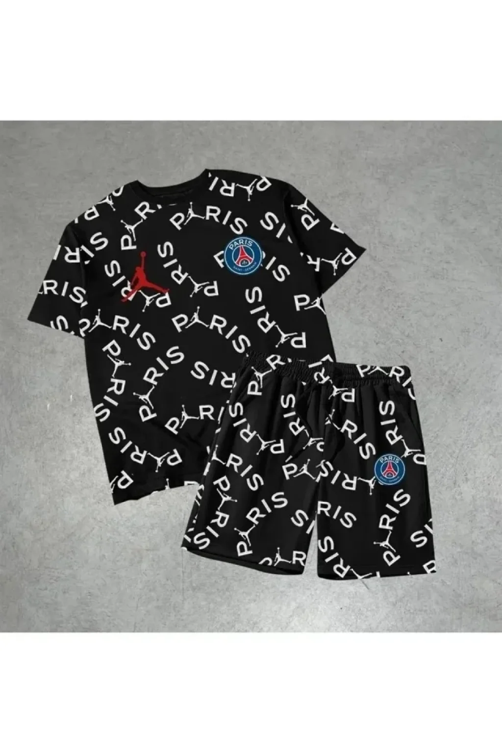 Erkek Baskılı İkili Şort Takım - Siyah