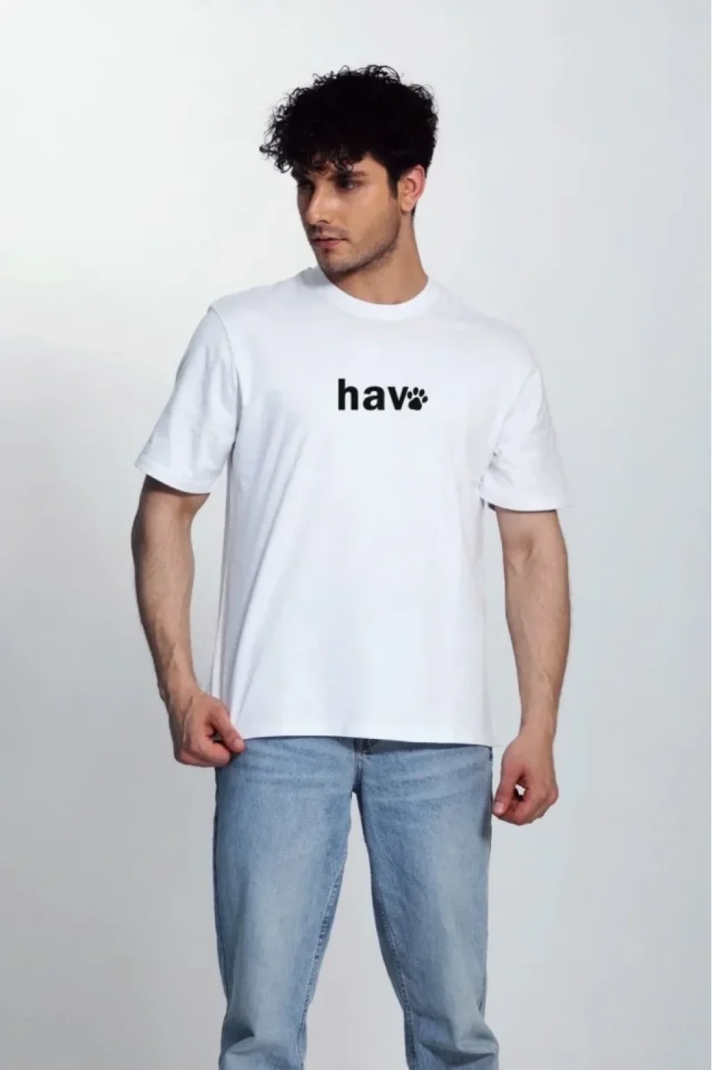 Erkek Bisiklet Yaka Kısa Kol Hav Baskılı T-shirt - Beyaz