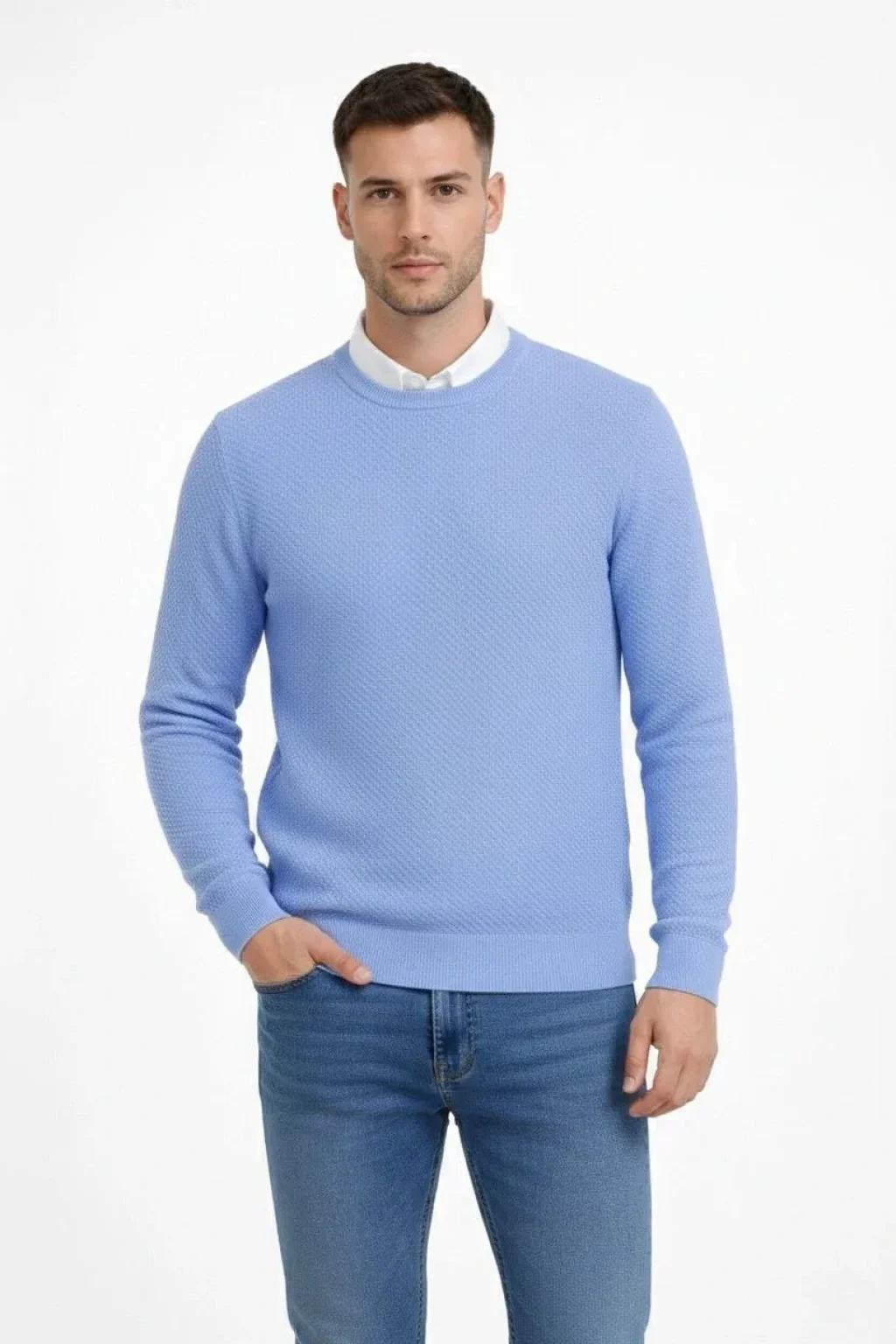 Erkek Bisiklet Yaka Petekli dokulu Triko Kazak Pamuklu ince Dokuma, uzun kollu Rahat Regular kalıp - Mavi
