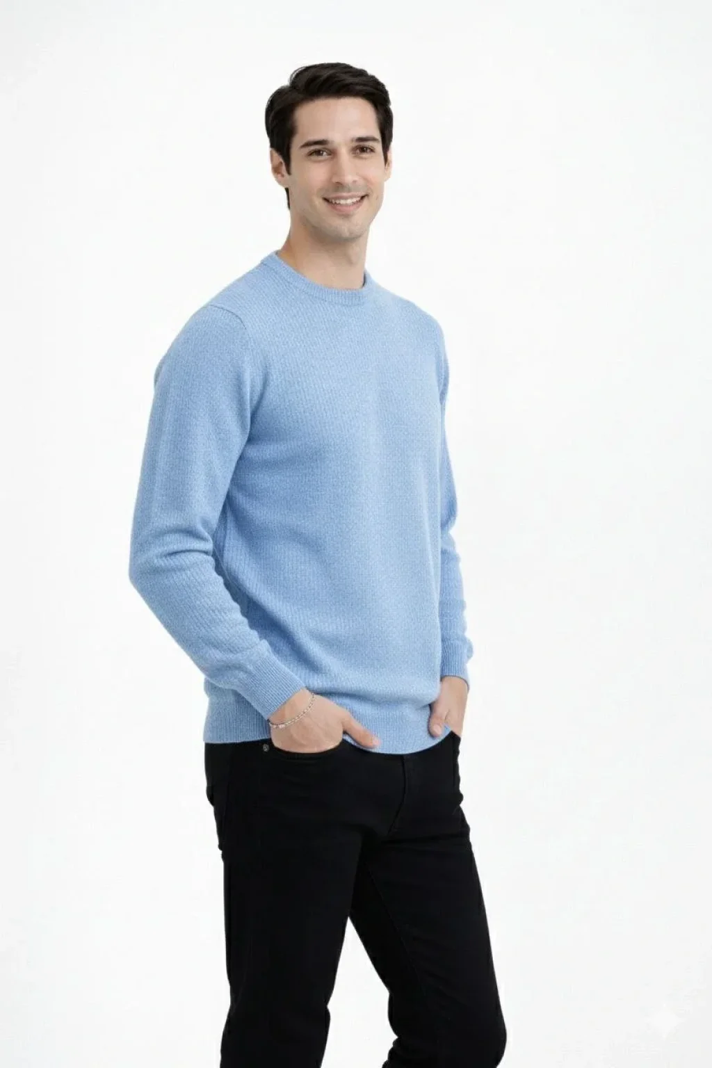 Erkek Bisiklet Yaka Triko Kazak yumuşak dokulu Pamuklu ince Dokuma, uzun kollu Rahat Regular kalıp - Açık Mavi