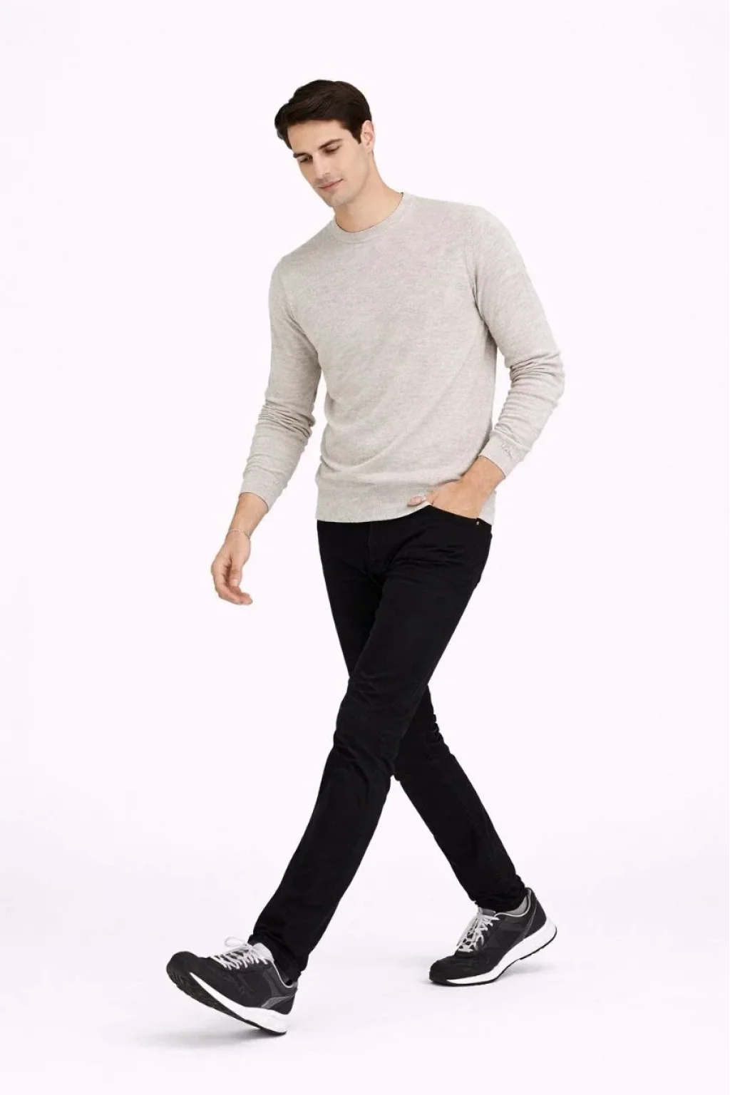 Erkek Bisiklet Yaka Triko Kazak yumuşak dokulu Pamuklu ince Dokuma, uzun kollu Rahat Regular kalıp - Bej