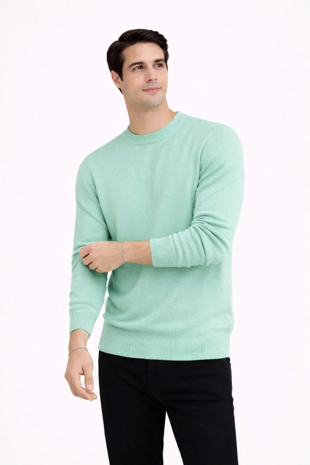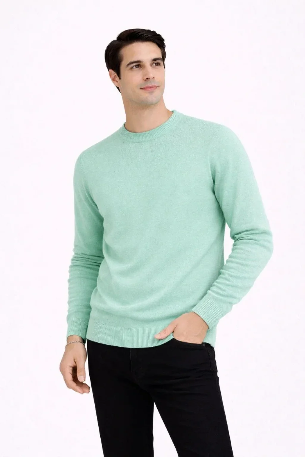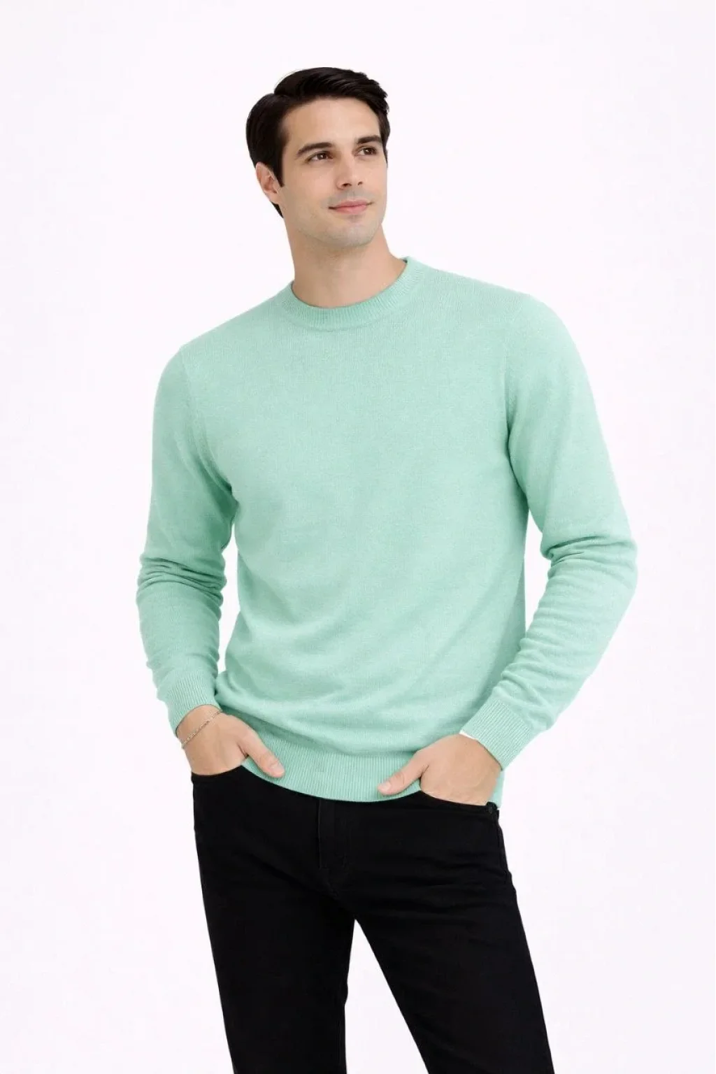 Erkek Bisiklet Yaka Triko Kazak yumuşak dokulu Pamuklu ince Dokuma, uzun kollu Rahat Regular kalıp - Mint Yeşili