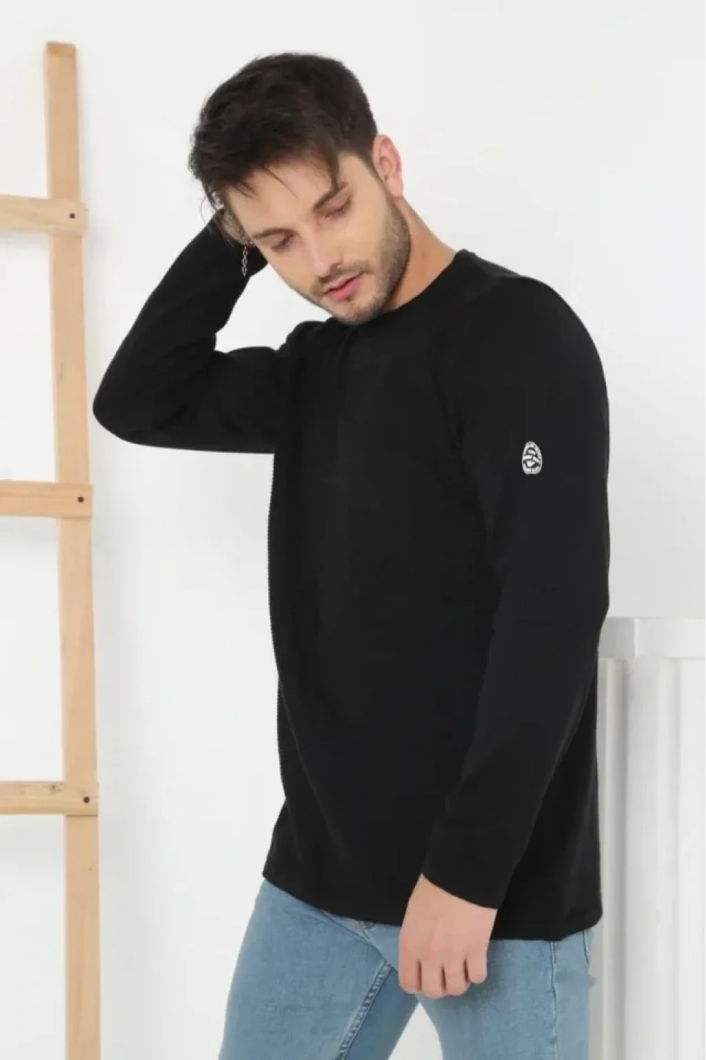Erkek Biskilet Yaka Kolu Armalı - Siyah