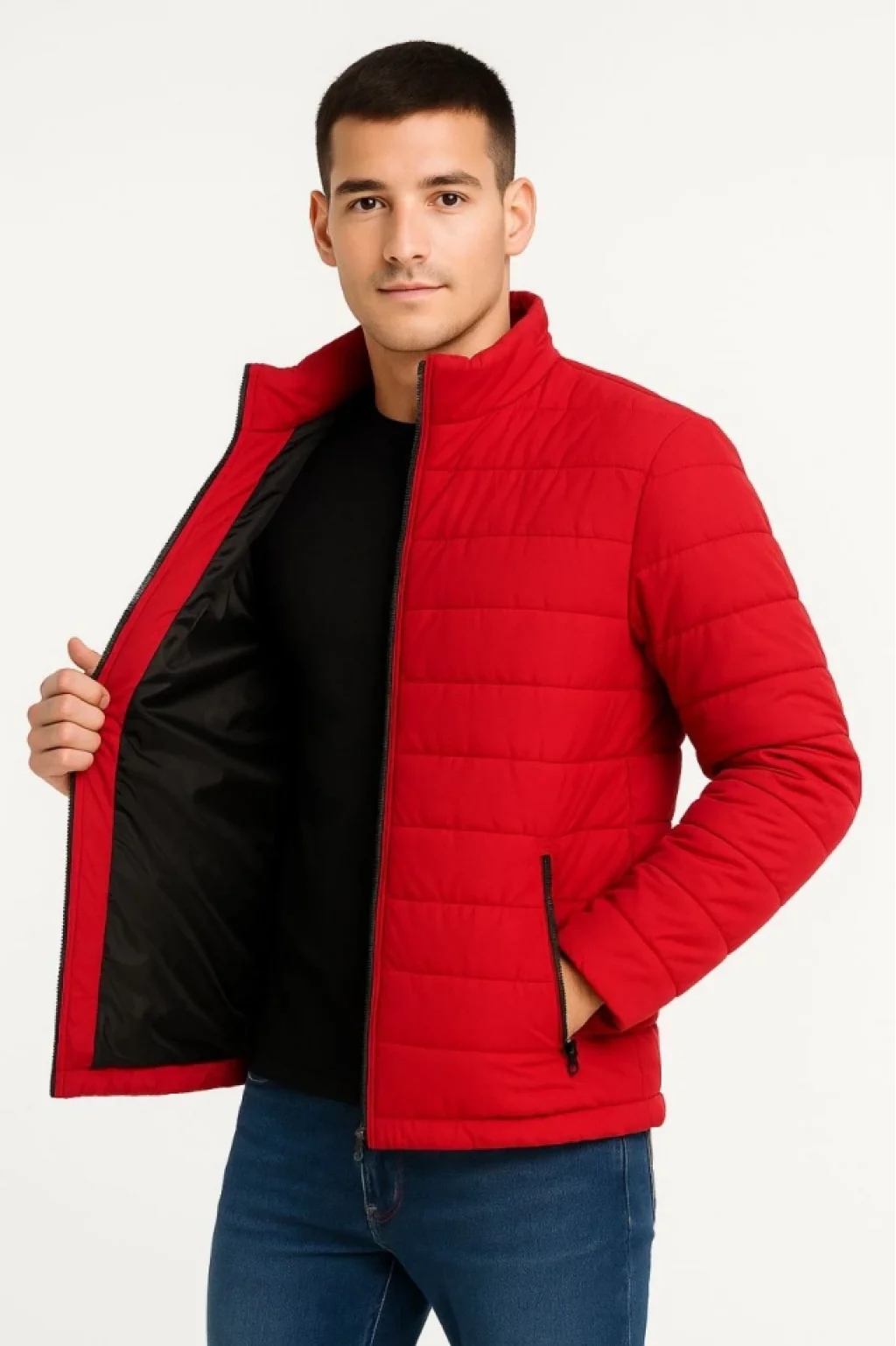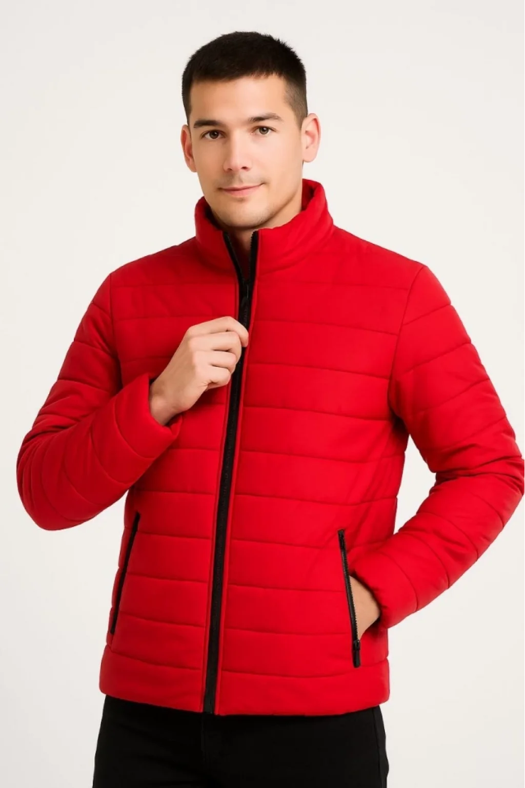 Erkek Bomber Mont Ceket – Su İtici Kumaş, Kapitone Astarlı, Fermuarlı, Kışlık - Kırmızı