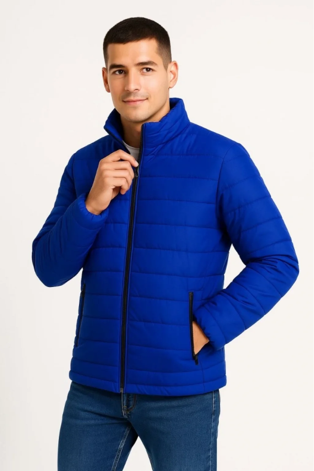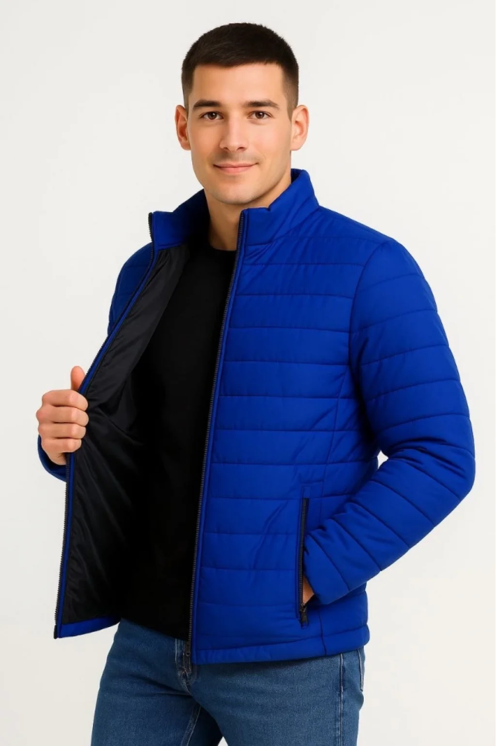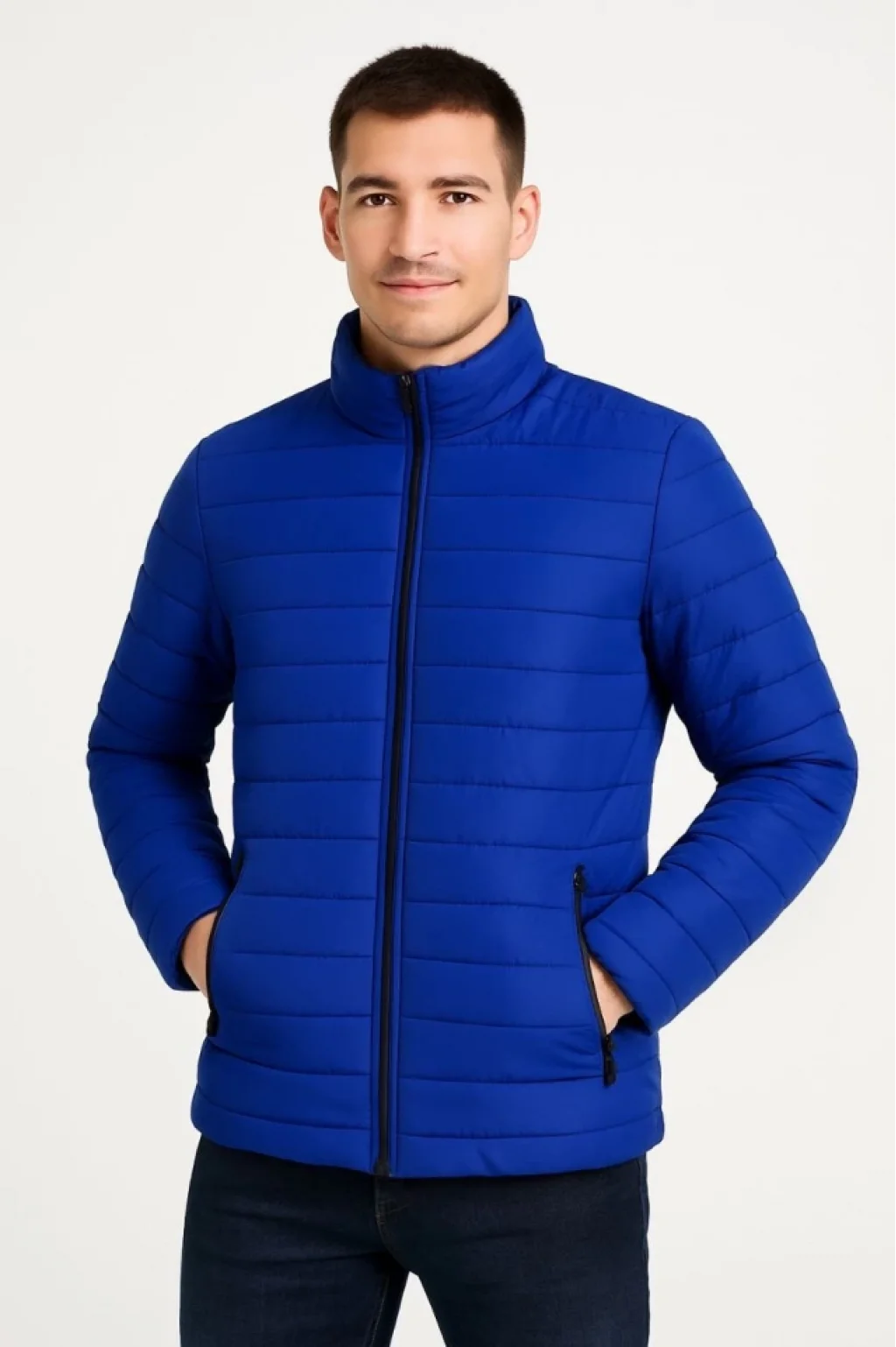 Erkek Bomber Mont Ceket – Su İtici Kumaş, Kapitone Astarlı, Fermuarlı, Kışlık - Saks Mavisi