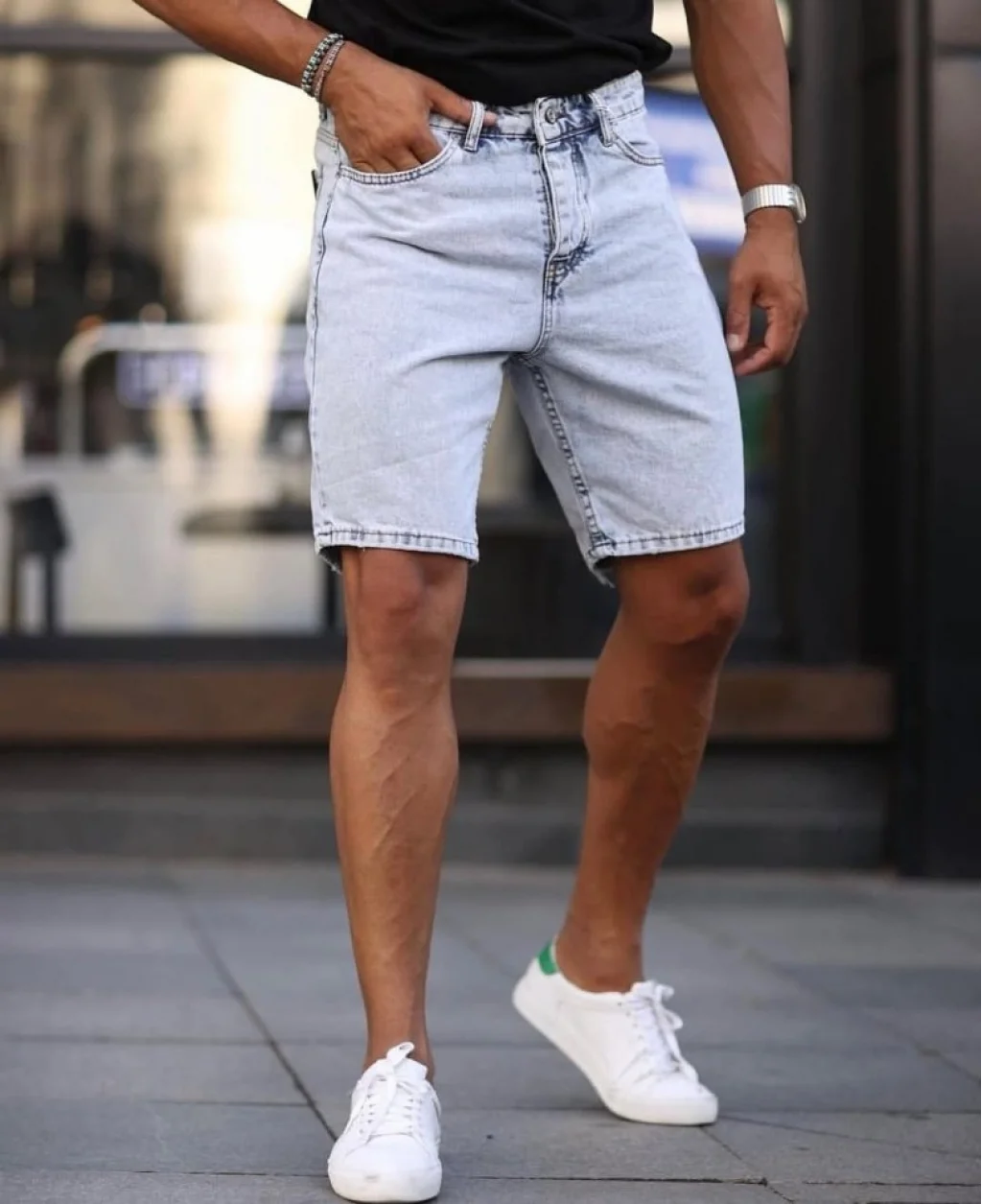 Erkek Buz Mavi Kar Yıkama Şort