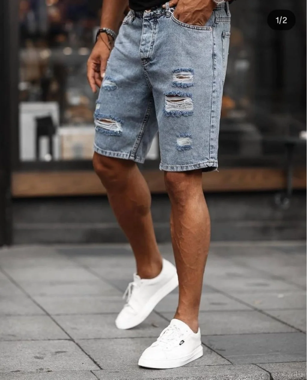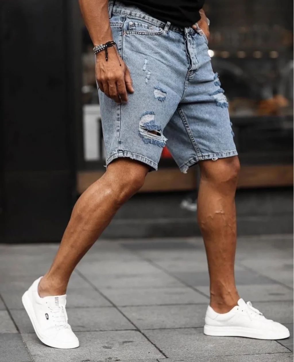 Erkek Buz Mavi Yırtık Detaylı Kot Şort