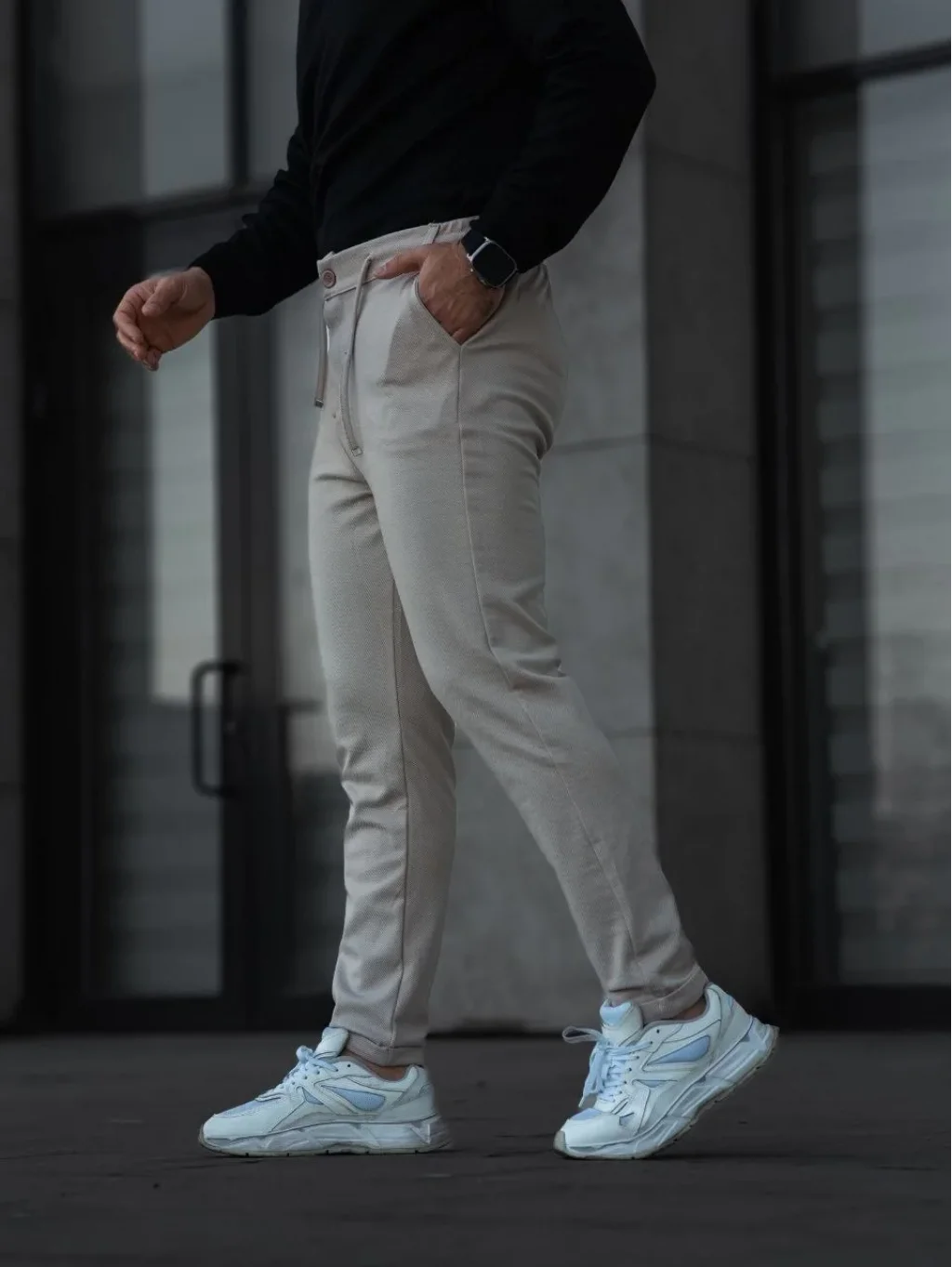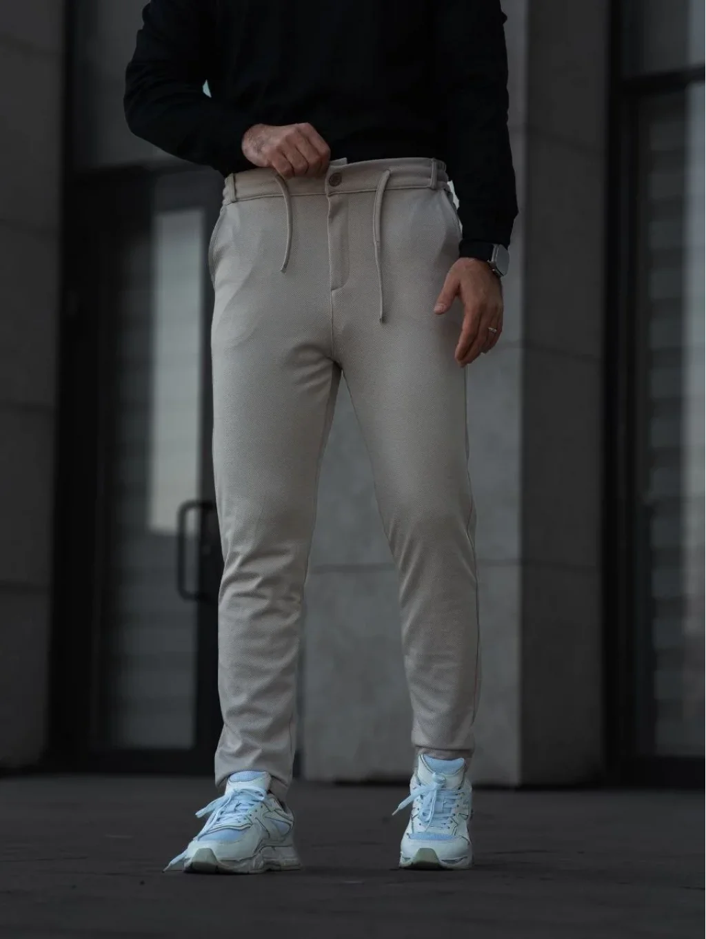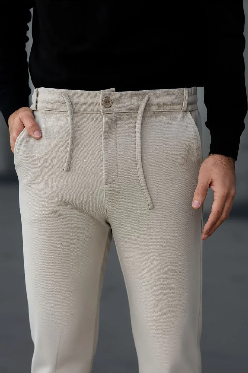 Erkek Diagonel Mikro dokulu Cepli Pantolon - Bej