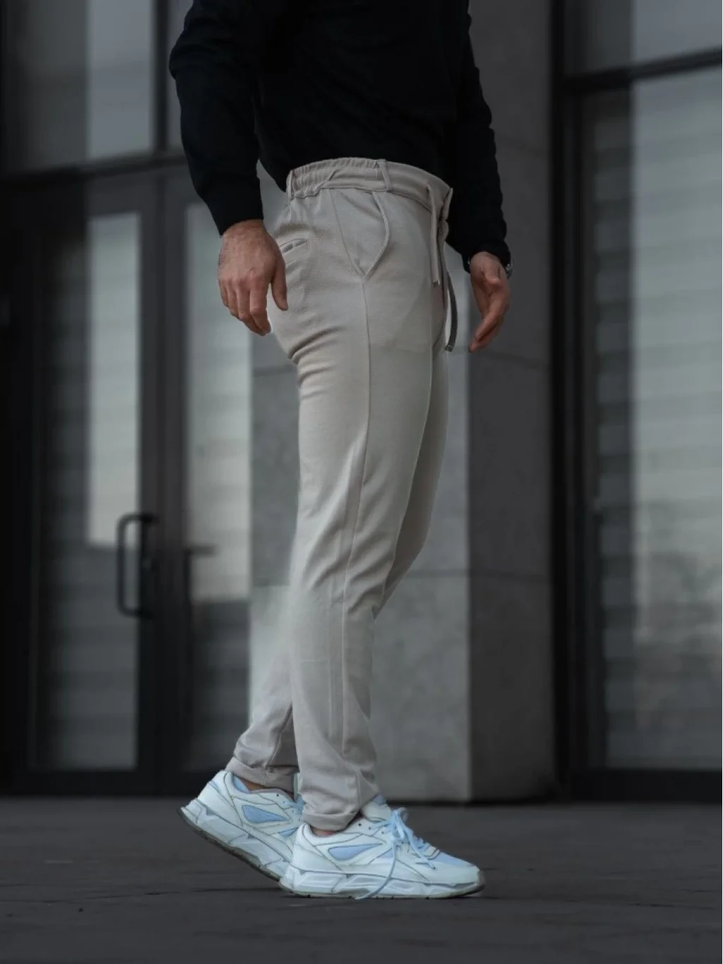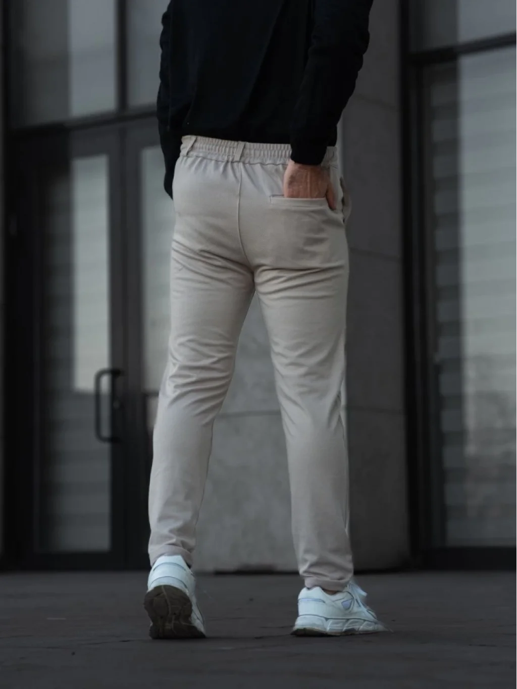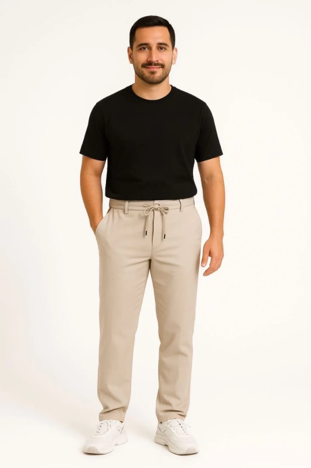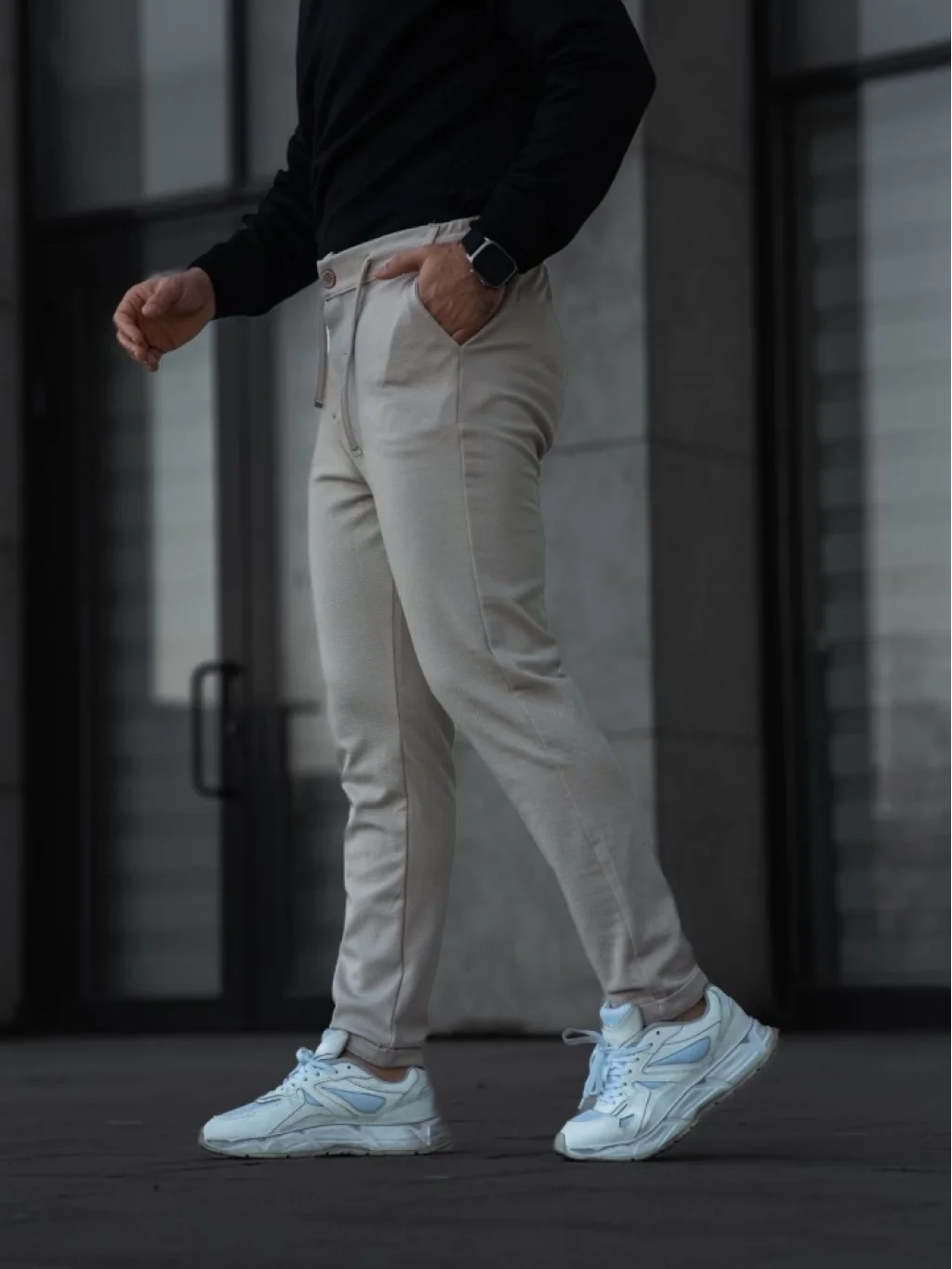 Erkek Diagonel Mikro Dokulu Cepli Pantolon - Bej