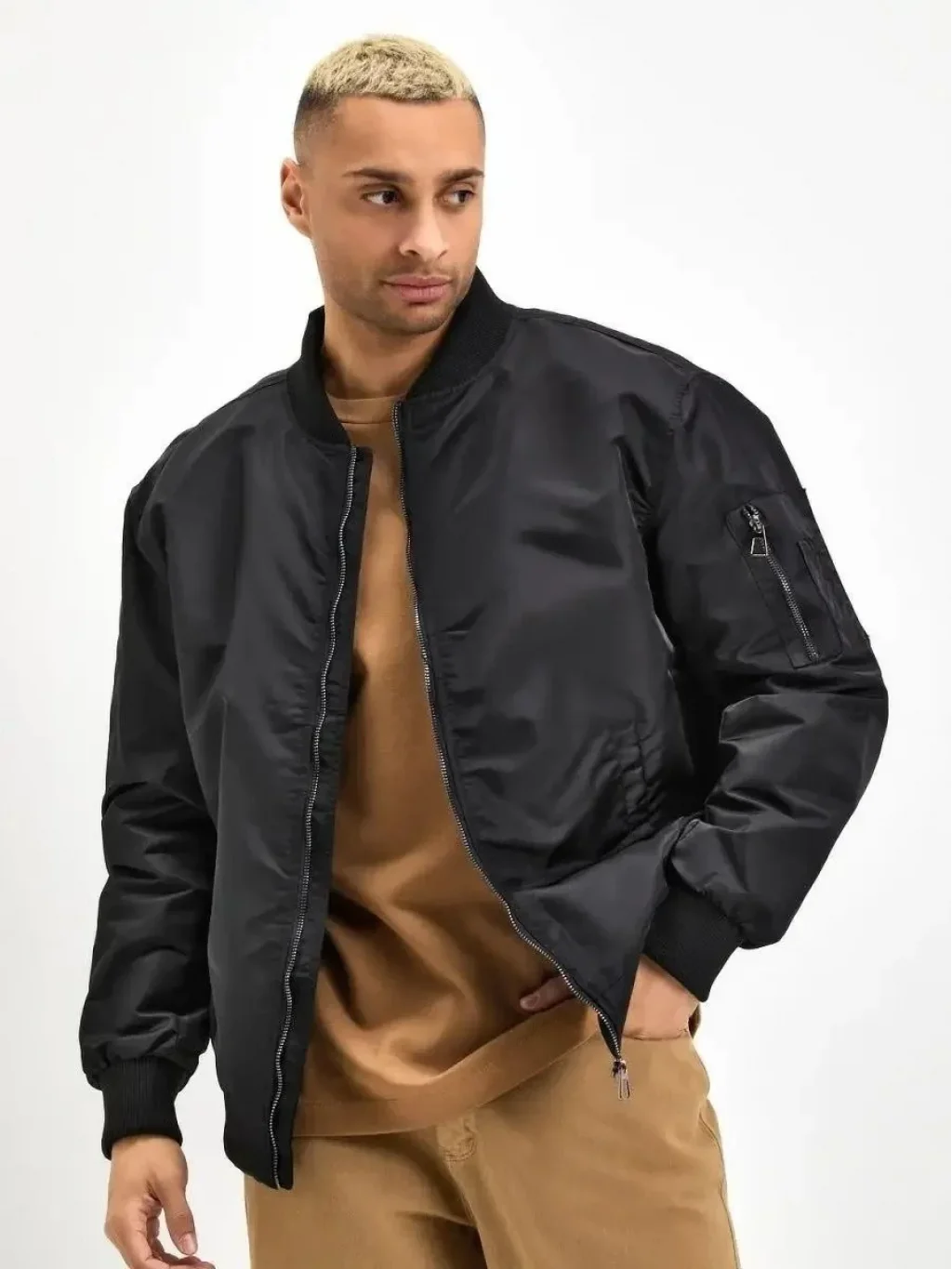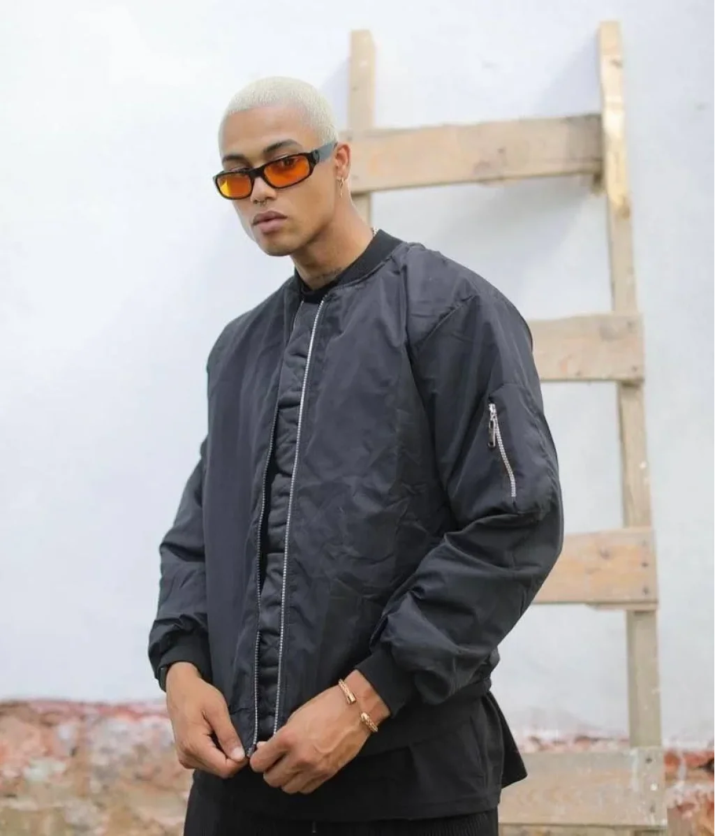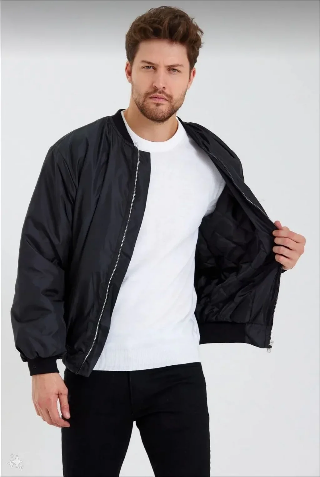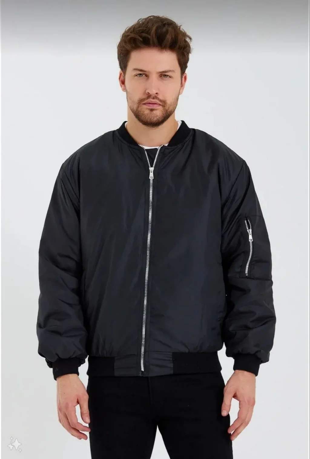 Erkek Düz Bomber Ceket - Siyah