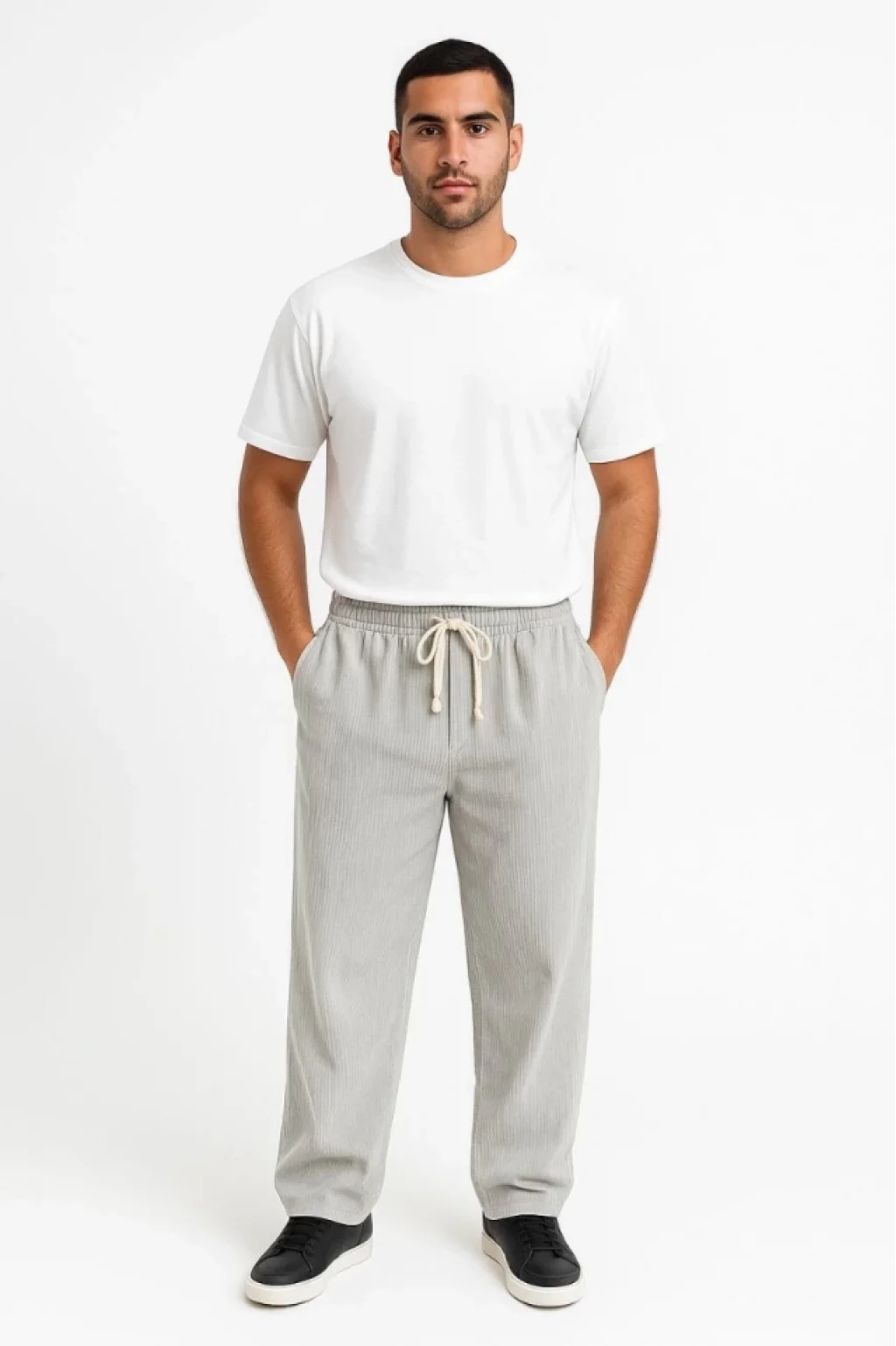 Erkek Fitilli Kadife Cepli Buggy Pantolon Oversize Rahat Kalıp - Gri