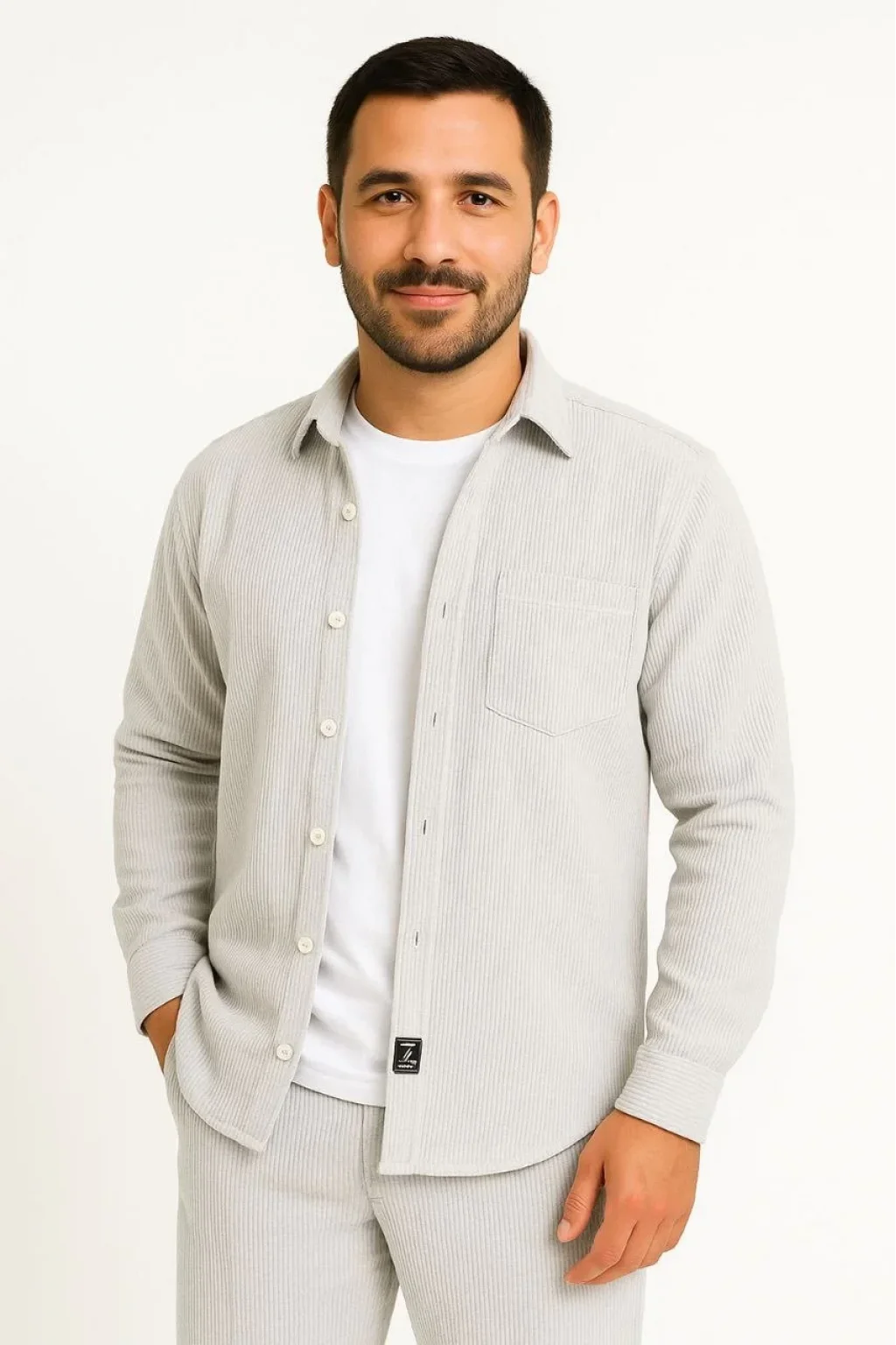 Erkek Fitilli Kadife Cepli Gömlek Oversize Rahat Kalıp - Gri