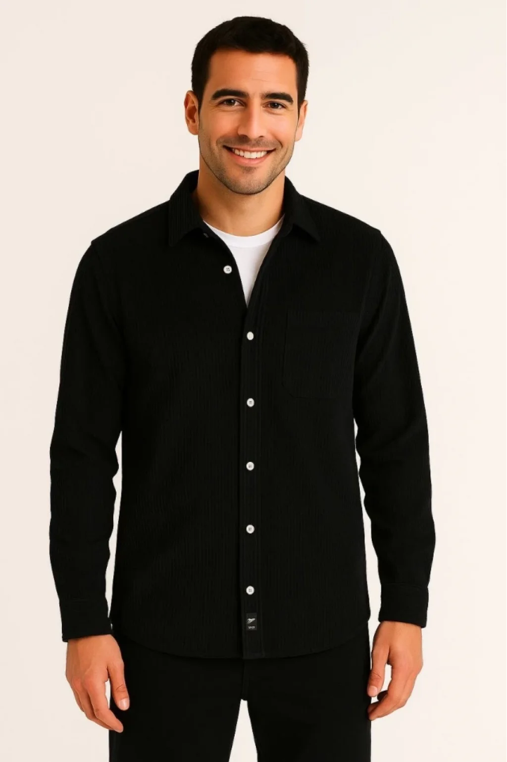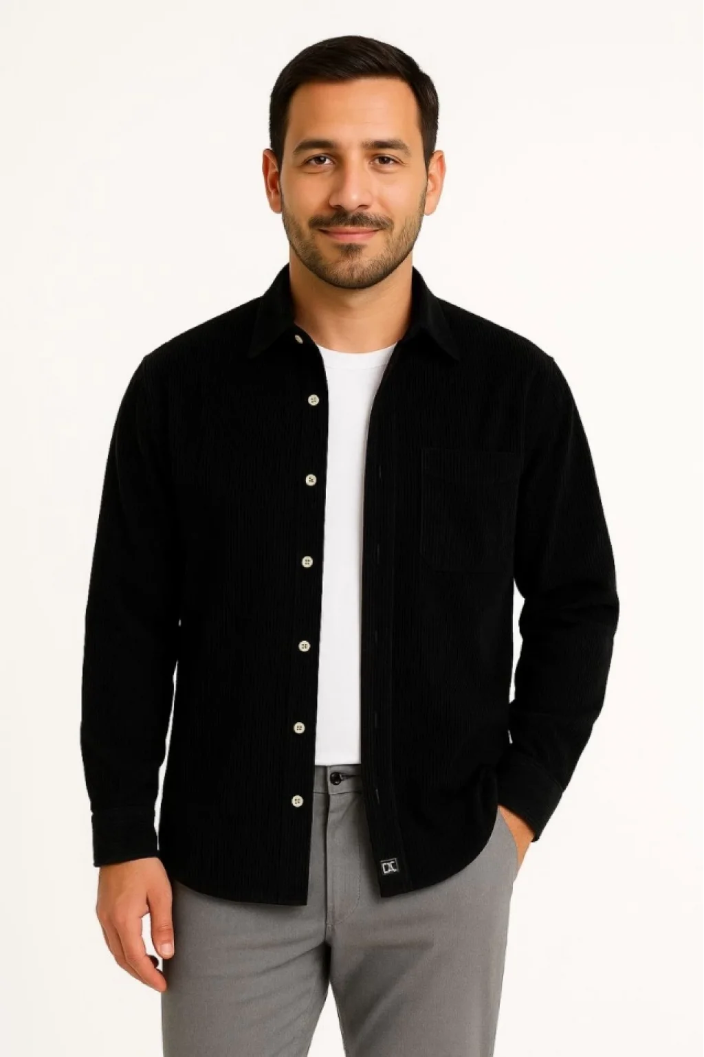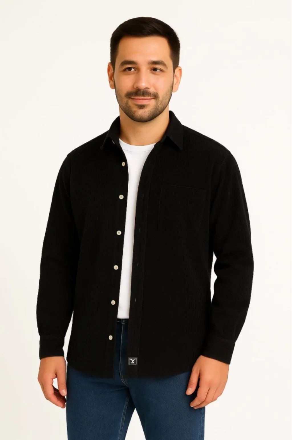 Erkek Fitilli Kadife Cepli Gömlek Oversize Rahat Kalıp - Siyah