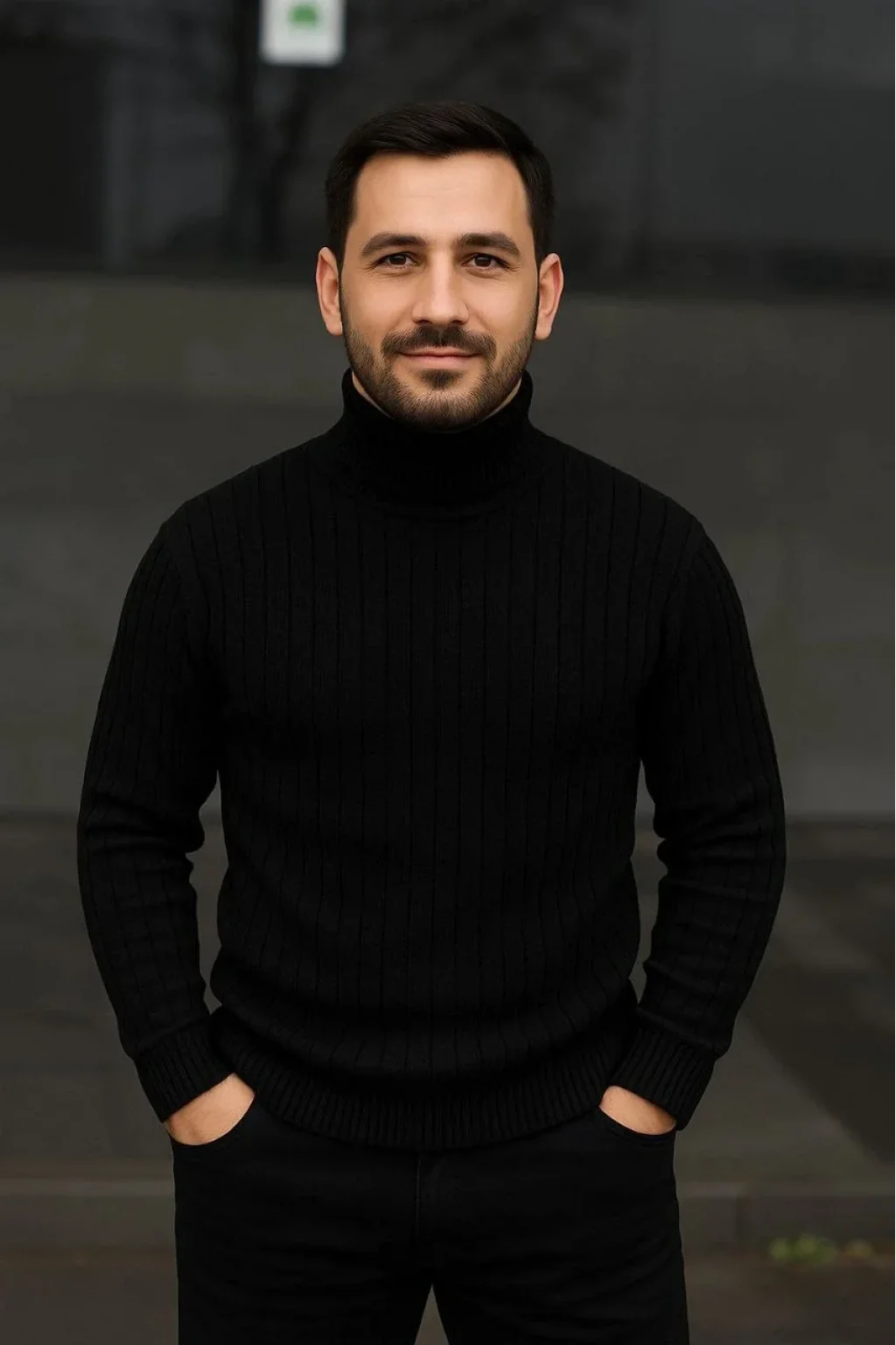 Erkek Fitilli Triko Kazak 2'li Set Bebek Mavisi Siyah Regular Balıkcı Yaka Tam Boğazlı Triko Seti Modeli Kazak