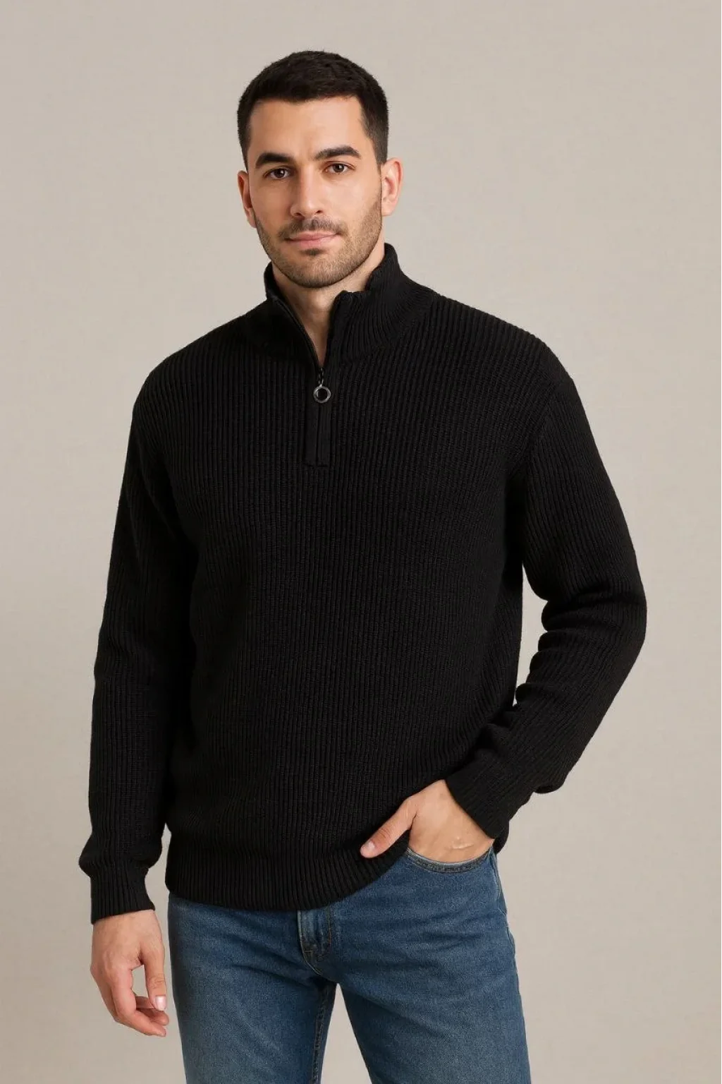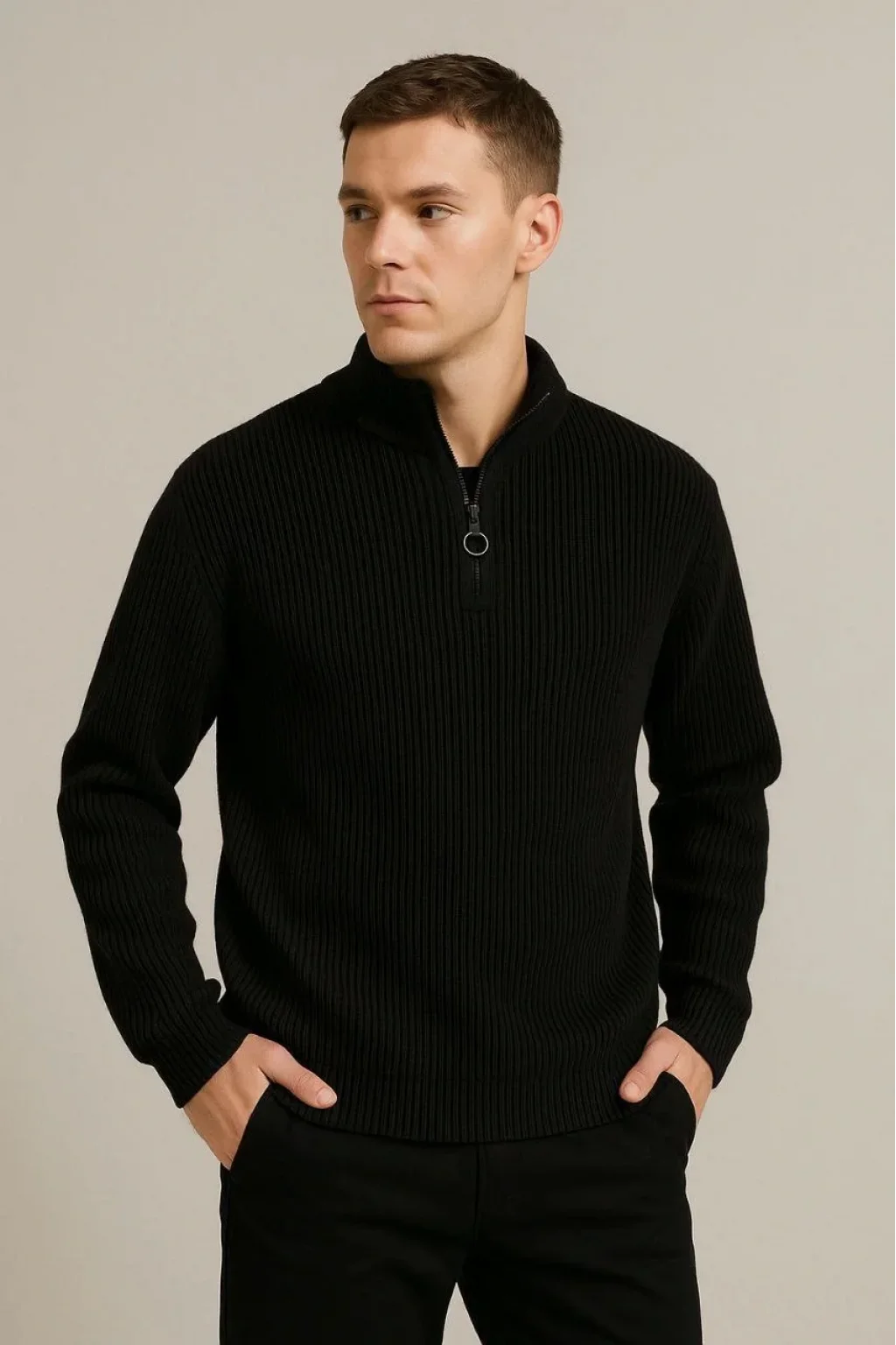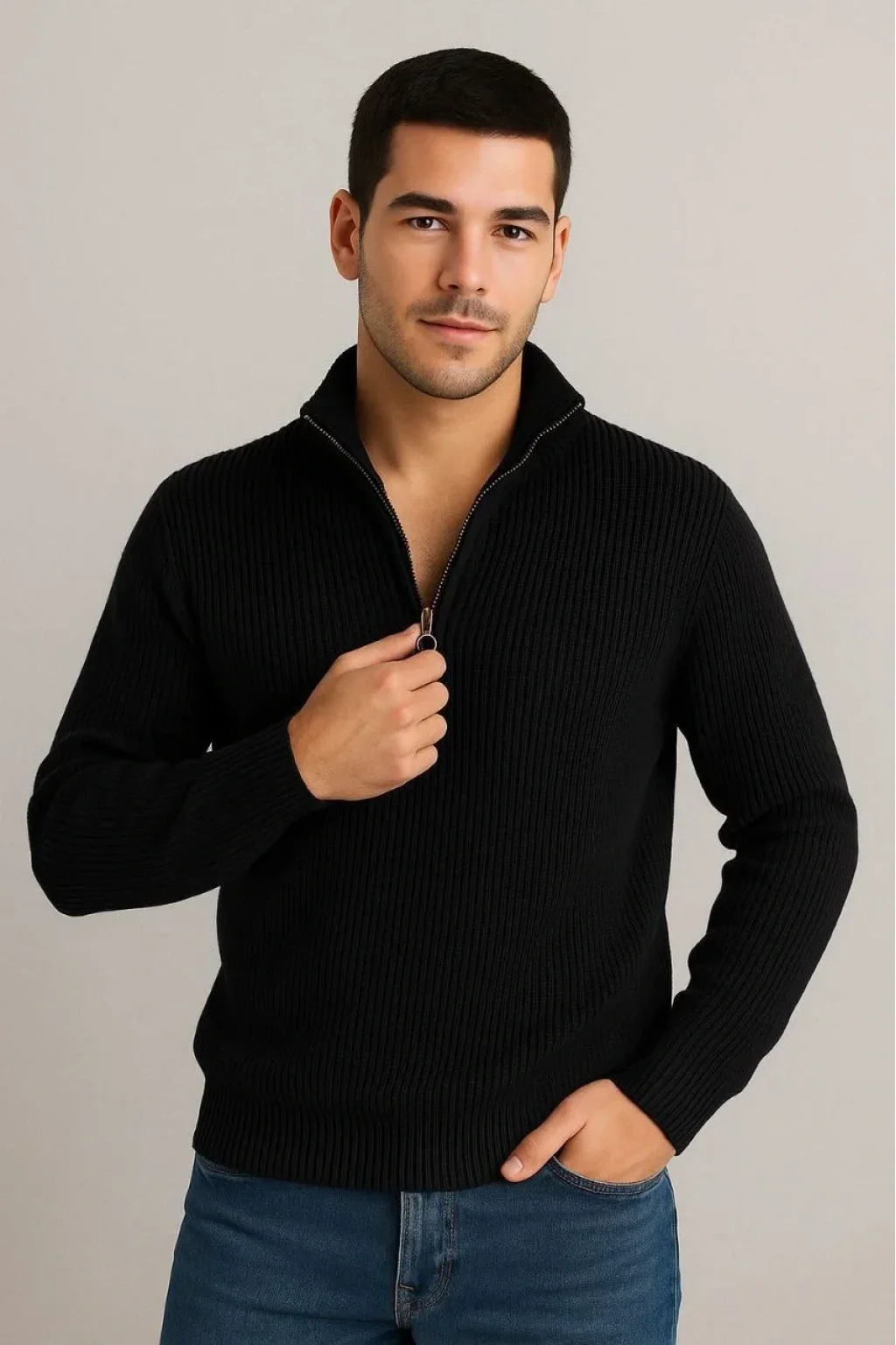 Erkek Fitilli Triko Kazak 2’li Set – Mint Yeşili & Siyah, Kalın Dokuma Pamuklu Regular Fit V Yaka Fermuarlı Uzun Kollu Rahat Kışlık Kazak Kombini