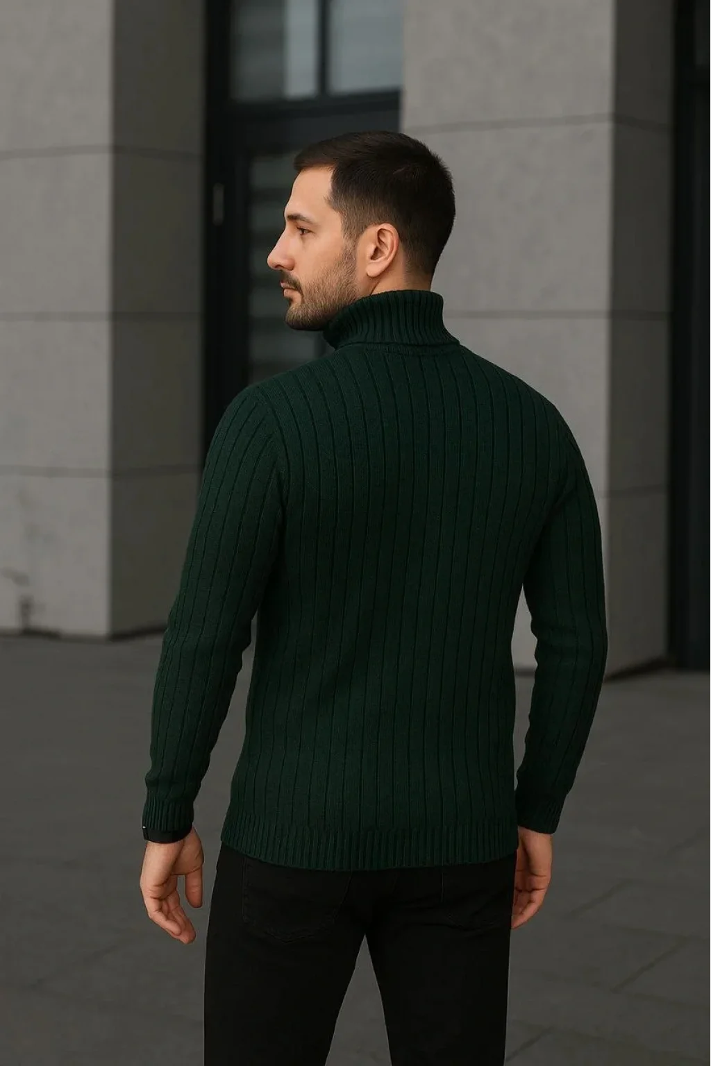 Erkek Fitilli Triko Kazak 3'lÜ Set Gri Haki Siyah Regular Balıkcı Yaka Tam Boğazlı Triko Seti Modeli Kazak