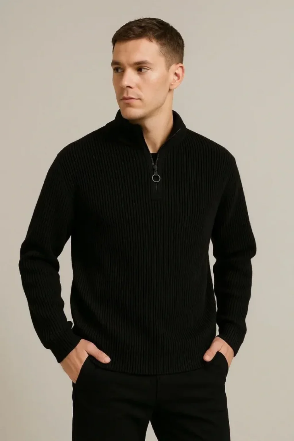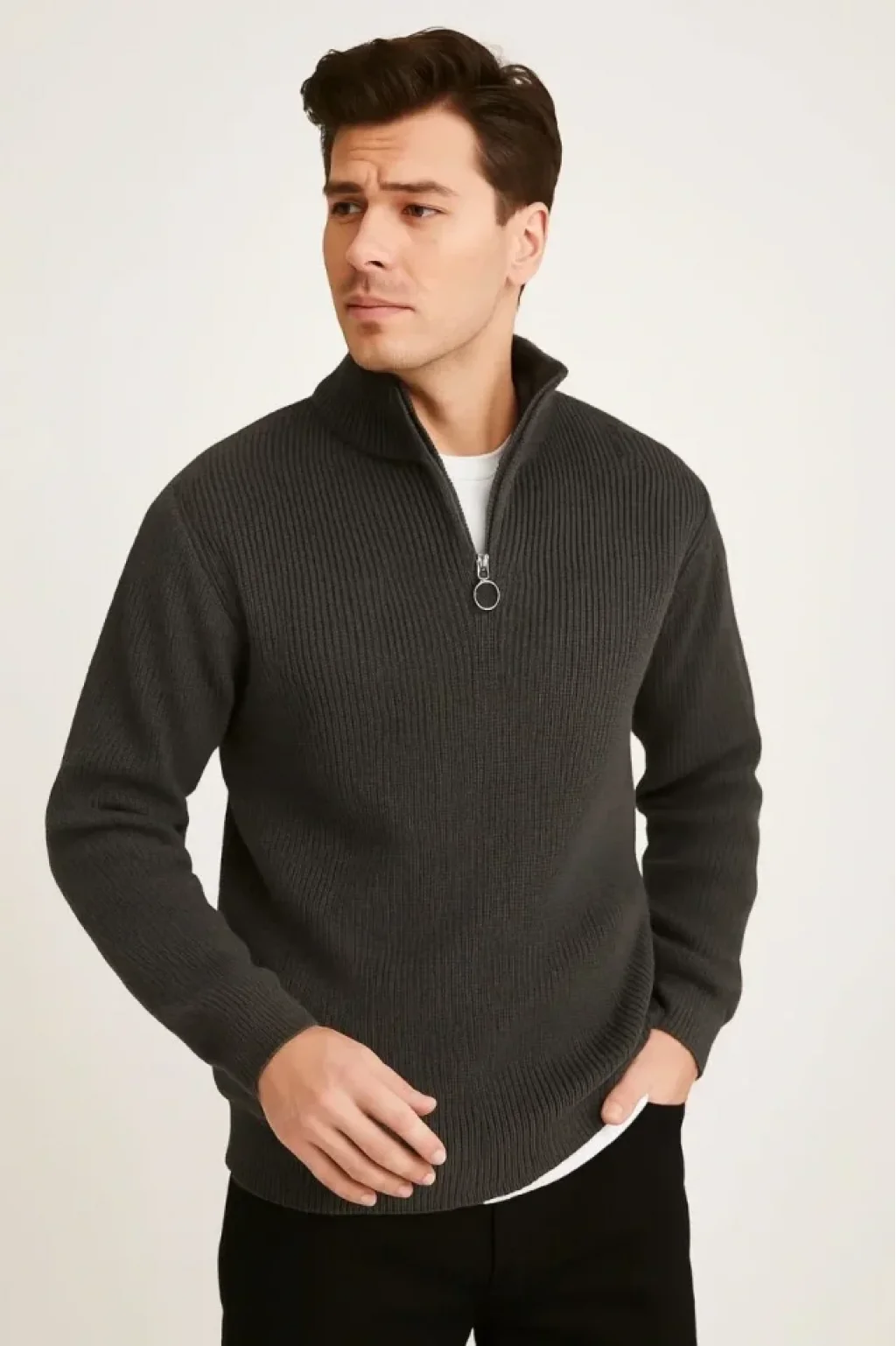 Erkek Fitilli Triko Kazak 3’lü Set – Mint Yeşili, Siyah, Füme Kalın Dokuma Pamuklu Regular Fit V Yaka Fermuarlı Uzun Kollu Rahat Kışlık Kazak Kombini